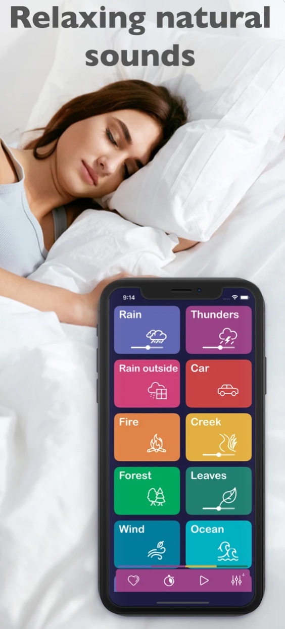 Aplikací pro relaxaci, meditaci, uvolnění a lepší spánek není nikdy dost. Ve Sleep Sounds najdete obsáhlou sbírku zvuků ve vysoké kvalitě, které si můžete namixovat doslova na míru. Tato relaxační aplikace nabízí nejen všechny možné zvuky přírody, ale také další specifické zvuky, jako je třeba zvuk jedoucího auta, puštěného ventilátoru, vlaku nebo třeba kavárny. Je jen na vás, jaký mix si vytvoříte pro rychlejší usnutí, lepší soustředění nebo třeba relaxaci.
