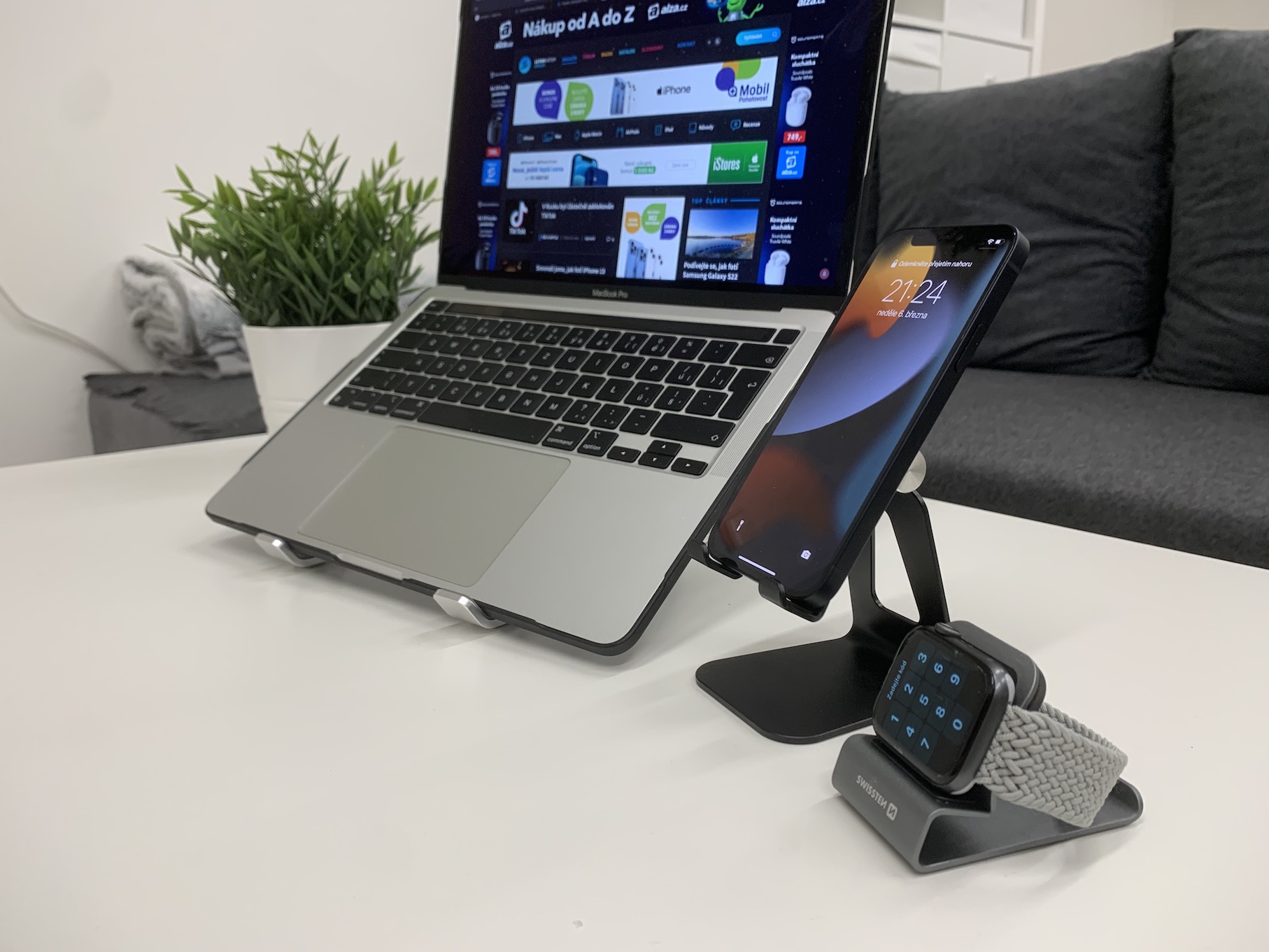 Na našem magazínu se relativně často objevují recenze na produkty od internetového obchodu Swissten.eu. Tento obchod nám dodává produkty stejnojmenné značky již po dobu několika dlouhých let a je mezi našimi čtenáři velmi oblíbený. Zatímco na začátku cesty tohoto obchodu jste mohli zakoupit prakticky jen powerbanky, kabely a základní příslušenství, tak aktuálně je portfolio produktů tohoto obchodu několikanásobně větší – a neustále se dál rozšiřuje. Mezi jedny z nejnovějších produktů patří právě stojany pro iPhone, MacBook a Apple Watch. Pokud byste si je tedy chtěli pořídit, tak můžete právě odsud – nemusíte zbytečně platit poštovné, vše máte k dispozici v jednom obchodě. Pojďme se společně v této recenzi na všechny tři zmíněné stojany podívat a nakonec si o ně i zasoutěžit – více se dozvíte na konci recenze.