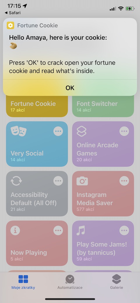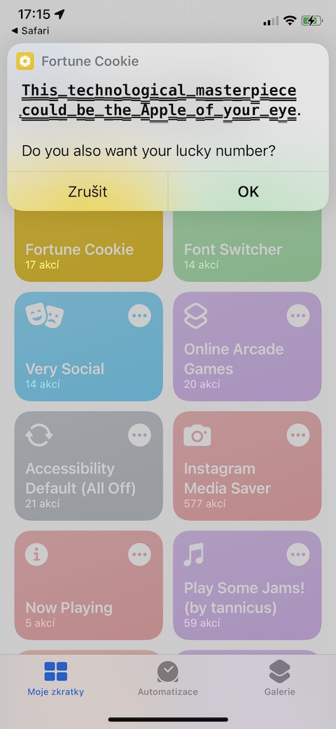Máte rádi takzvané koláčky nebo sušenky štěstí, ve kterých se skrývá tajemná rada do budoucna nebo záhadné moudro? Díky zkratce s názvem Fortune Cookies se nebudete muset po těchto laskominách shánět pokaždé, když budete mít chuť na věštbu. Stačí zkrátka jen spustit zkratku.