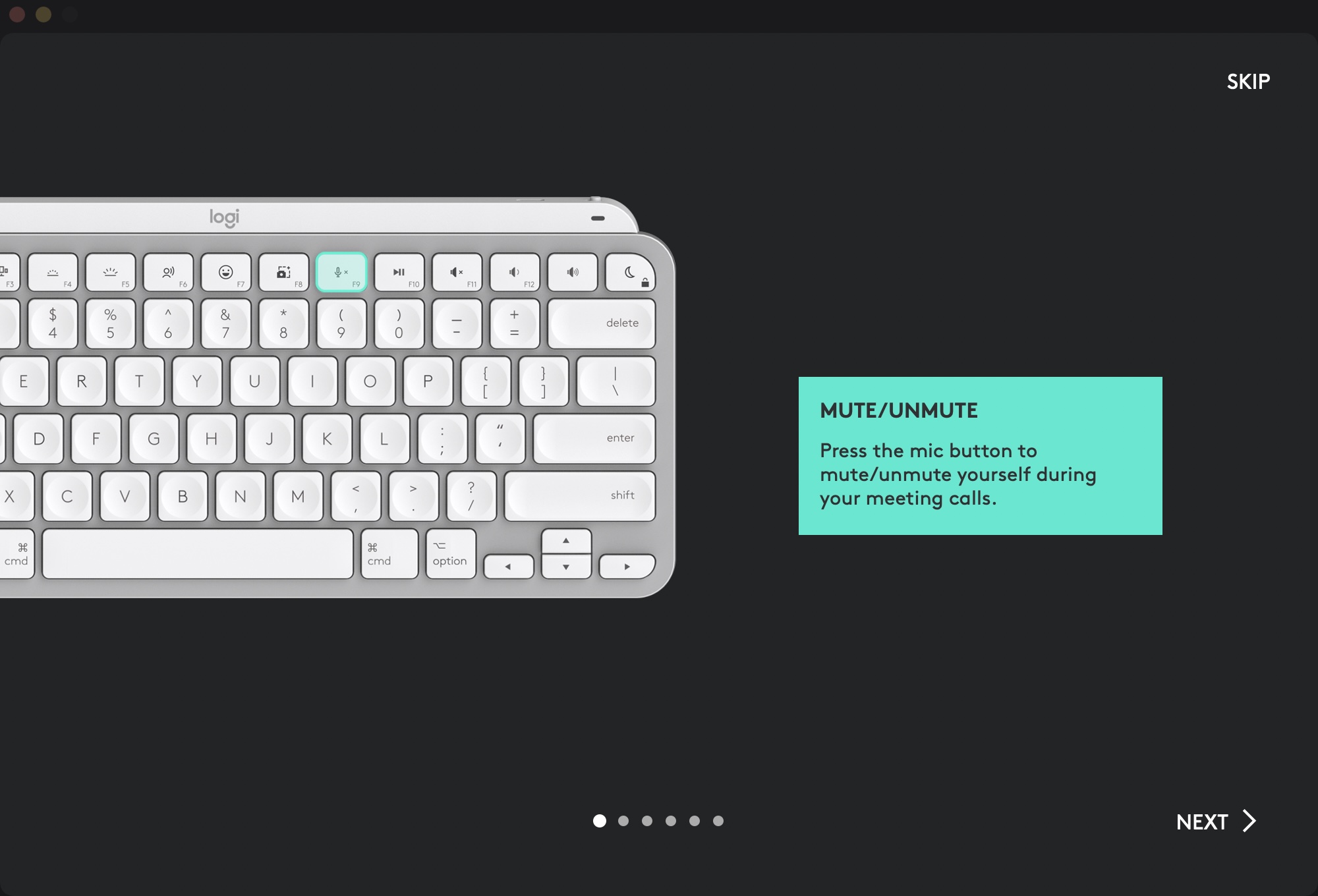 Dále bych se chtěl věnovat dalším funkčním klávesám, které jsou na MX Keys Mini k dispozici. Pokud jste někdy měli k dispozici Magic Keyboard od Applu, tak oproti ní se horní řada funkčních kláves liší. Úplně první klávesou zleva je samozřejmě Escape, následují tři zmíněné klávesy pro rychlé přepínání mezi zařízeními. Další dvě klávesy slouží pro změnu intenzity podsvícení klávesnice. V pořadí se pak dále nachází klávesa pro zahájení diktování a pro zobrazení malého okna pro vkládání emoji. Potěší také klávesa pro přesunutí se do režimu zachycení snímku obrazovky, velmi užitečná je pak klávesa, díky které můžete ihned deaktivovat váš mikrofon, což se hodí například při různých konferencích a hovorech. Nechybí samozřejmě klasické klávesy pro ovládání hudby a hlasitosti. Poslední klávesou pak můžete na Macu aktivovat režim nerušit, a pokud podržíte klávesu Fn, tak Mac stejnou klávesou jednoduše uzamknete. Ve spodní části se pak nachází klávesy rozpoložené stejně jako na Apple klávesnicích, tj. zleva Fn, Control, Option a Command.