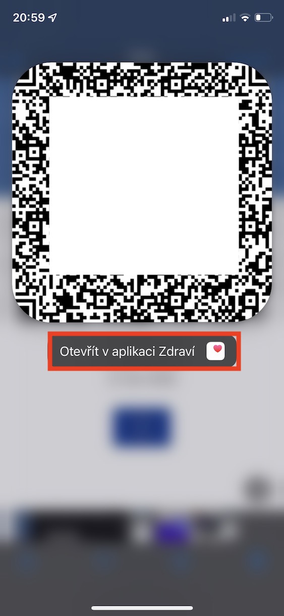 - Poté dojde k načtení a ohraničení QR kódu. Zobrazí se možnost Otevřít v aplikaci Zdraví, na kterou klepněte.
