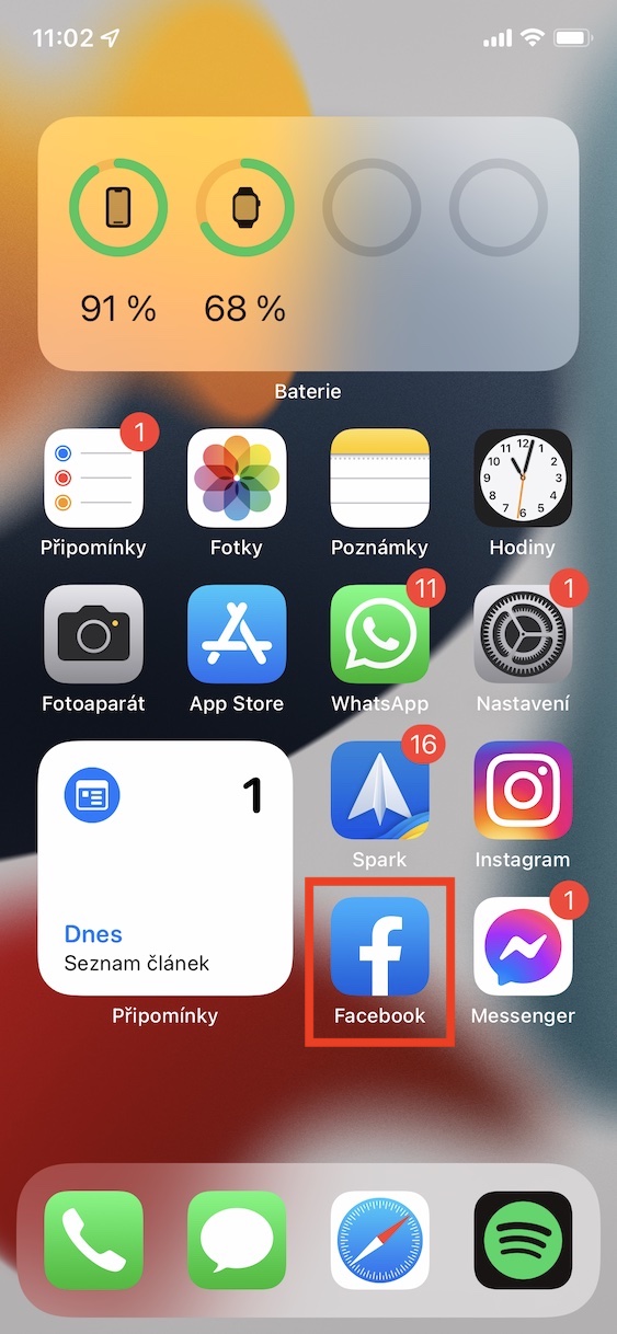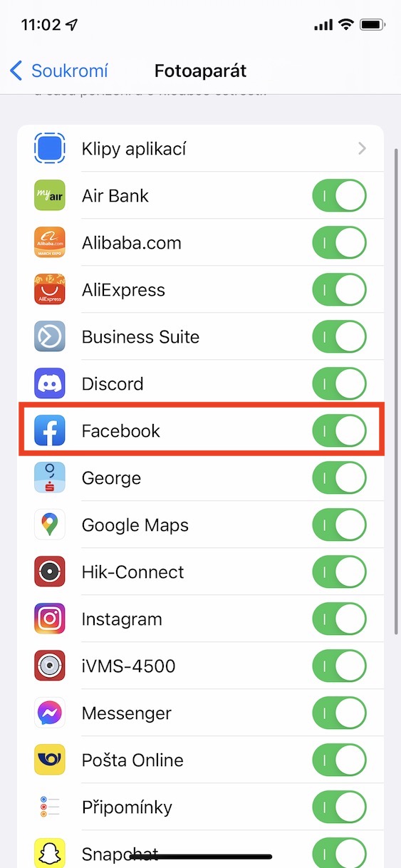 - Poté sjeďte o kus níže, kde v seznamu aplikací najděte Facebook.