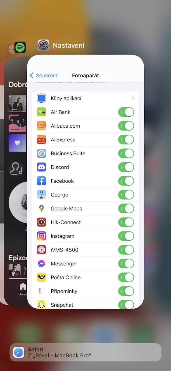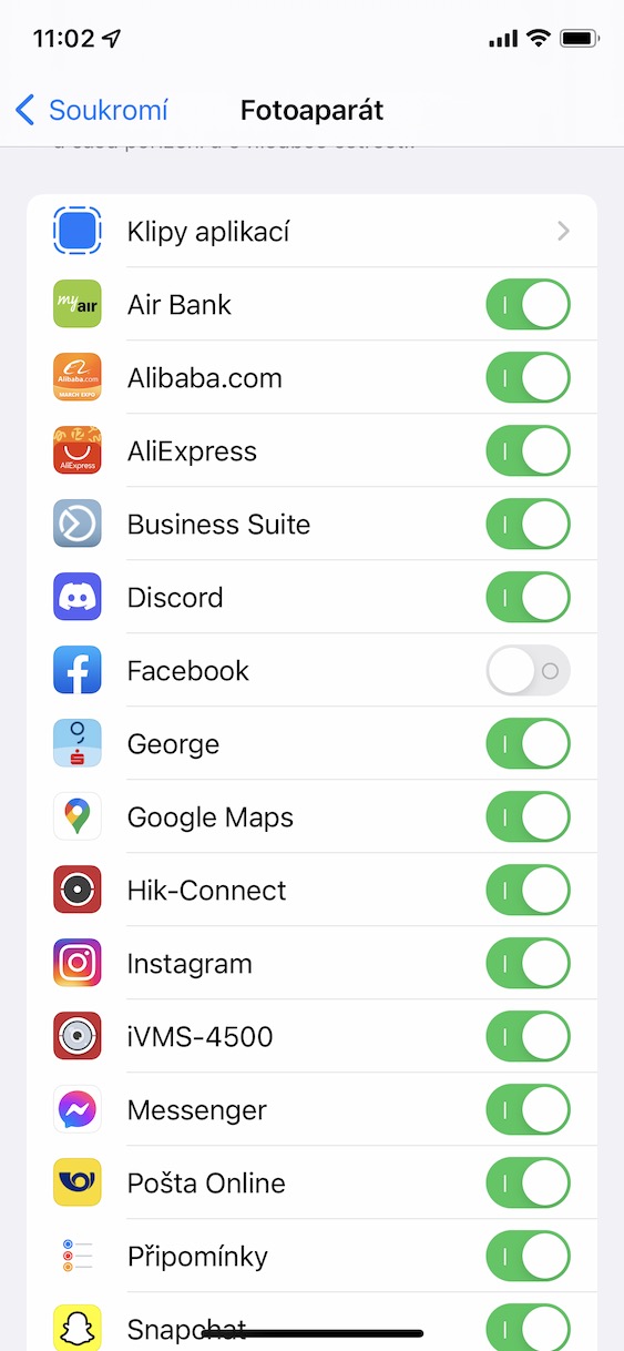 - Nakonec u této aplikace přepněte přepínač do opačné polohy.