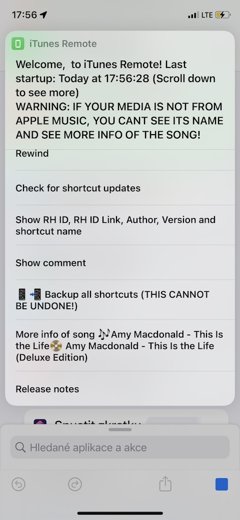 Zkratka iTunes Remote funguje jako jakýsi vylepšený ovladač pro hudbu z Apple Music, a to nejen na vašem iPhonu, ale i na dalších připojených zařízeních. S její pomocí můžete ovládat hlasitost, přehrávání, pořadí skladeb, ale třeba také zobrazit informace o právě přehrávané skladbě nebo vyčistit frontu přehrávaných skladeb.