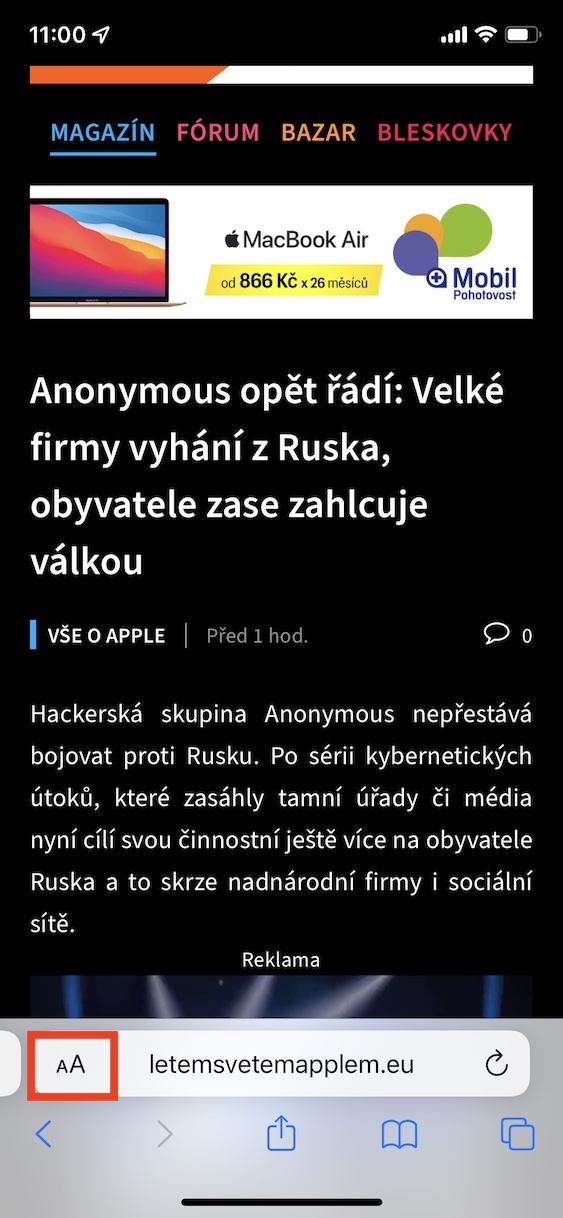 - Jakmile tak učiníte, tak klepněte vlevo dole na ikonu písmen aA.
