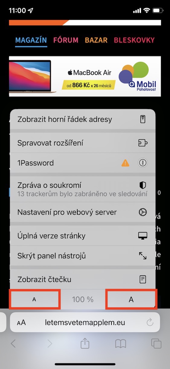 Výše uvedeným postupem je tedy na iPhonu v Safari možné změnit velikost písma. Pokud byste chtěli vrátit velikost písma do původních hodnot, tak stačí, abyste prstem klepnuli na procentuální údaj uprostřed. Nutno zmínit, že pokud provedete na stránce změnu písma, tak se tyto změny projeví na celé doméně. Tudíž pokud si změníte velikost textu na našem magazínu, tak nedojde ke změně jen na té stránce, na které se nacházíte, ale na kompletně celé webové stránce, tudíž nemusíte měnit velikost u každého článku zvlášť.