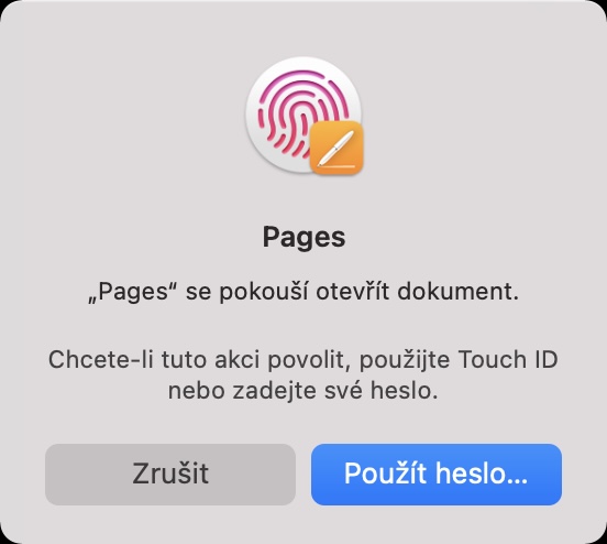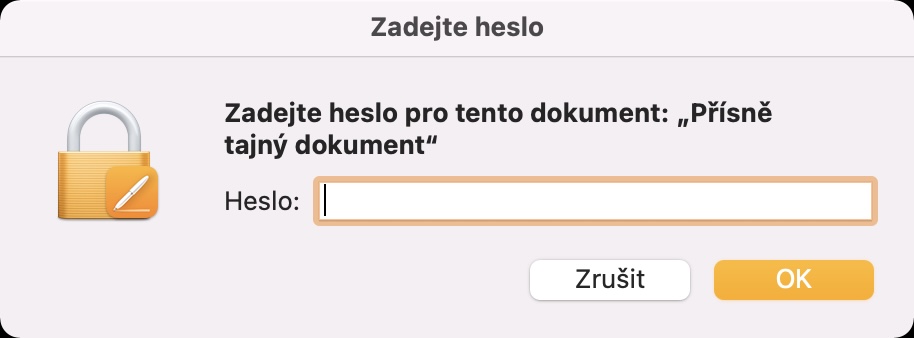 Pomocí výše uvedeného postupu je tedy možné jednoduše zaheslovat Pages, Numbers či Keynote dokument. Jakmile zaheslování provedete, tak se v ikona dokumentu objeví zámeček a samozřejmě dojde ke skrytí náhledu v ikoně. Po otevření zaheslovaného dokumentu se vám otevře malé okno, ve kterém je následně nutné se autorizovat, a to buď pomocí Touch ID, anebo právě hesla. Po úspěšné autorizaci už se rázem ocitnete v dokumentu, který se po uložení a zamčení opětovně uzamkne, což se může některým uživatelům rozhodně hodit.