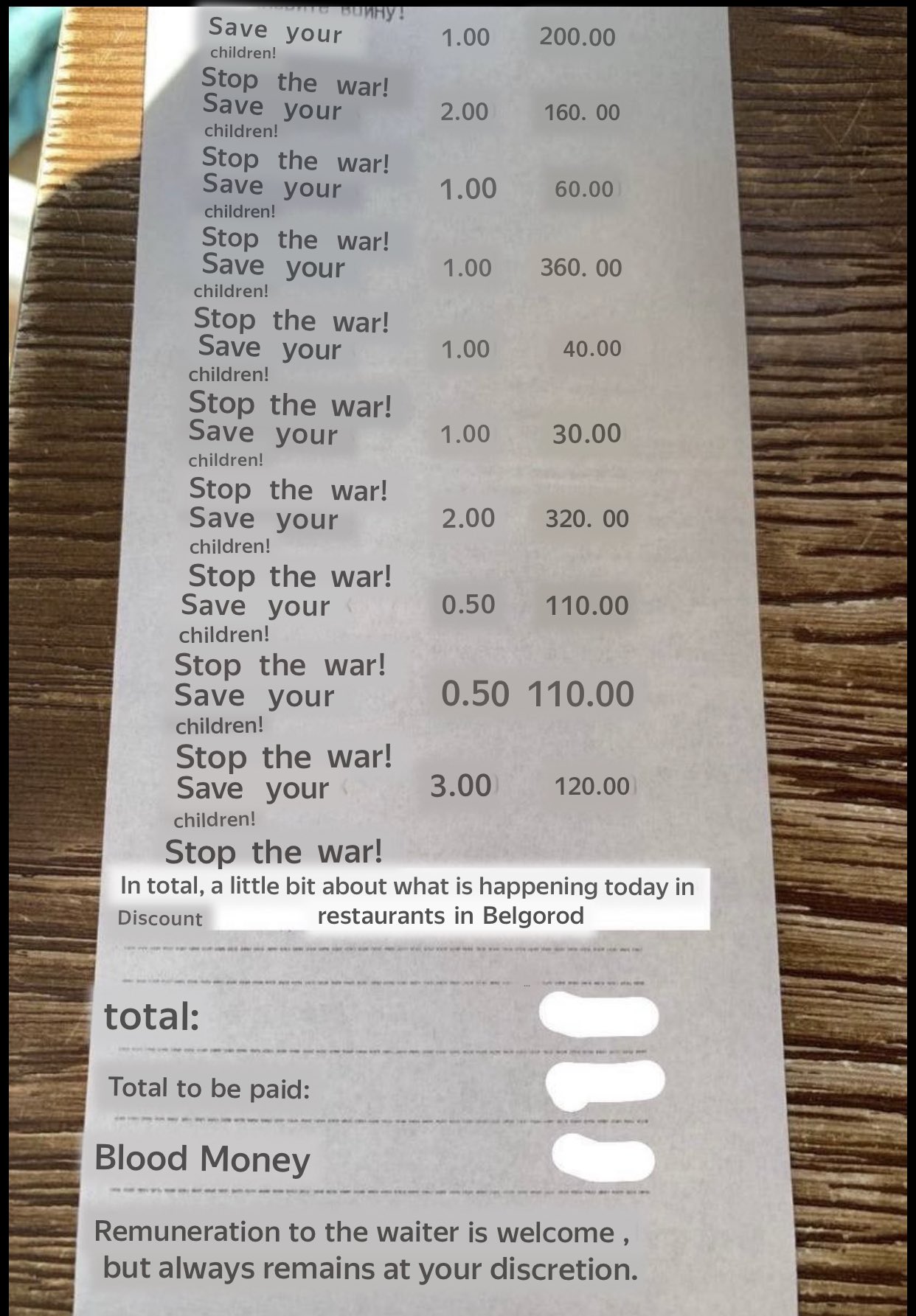 Od hackování ruských vládních webů či státních televizí a zpravodajských služeb se Anonymous přesunuli v posledních dnech k hackování nadnárodních firem, které z Ruska zatím neodešly a tedy jej svým způsobem stále podporují. Krom toho se pak hackeři snaží obyčejným Rusům otevřít oči informační kampaní o válce na Ukrajině, kterou rozjeli jak na sociálních sítích (které se jim podařily taktéž hacknout), tak třeba i v tisku, restauracích a tak podobně. Schopni jsou totiž hacknout dokonce i terminály na tisk účtenek v restauracích, na kterých nyní na mnoha místech Ruska vyjíždí (samozřejmě v azbuce) lístky obsahující místo názvu objednávek hesla typu “zastavte válku” či “zachraňte své děti”. Jeden takový lístek, byť “projetý přes Google překladač, se objevil před pár hodinami na internetu, a vy si jej můžete díky tomu prohlédnout v galerii vedle tohoto odstavce.