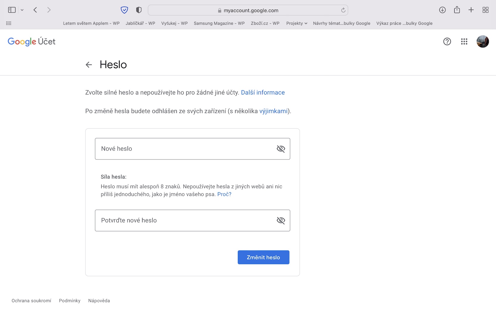 I přesto, že jste prostřednictvím dvoufázového ověření chráněni proti odcizení účtu i v případě, že někdo zjistí vaše přihlašovací údaje, tak byste rozhodně měli zamezit, aby k tomu vůbec mohlo dojít. To znamená, že je rozhodně důležité mít nastavené pořádně silné heslo. Takové silné heslo by mělo mít alespoň 8 znaků a skládat by se mělo z malých a velkých písmen, číslic a speciálních symbolů. Tak zajistíte, že se útočníkovi nepodaří vaše heslo prolomit. Pro změnu hesla přejděte na stránku Osobní údaje, kde sjeďte níže ke kategorii Heslo. Zde stačí na to stávající klepnout, přihlásit se a provést změnu.