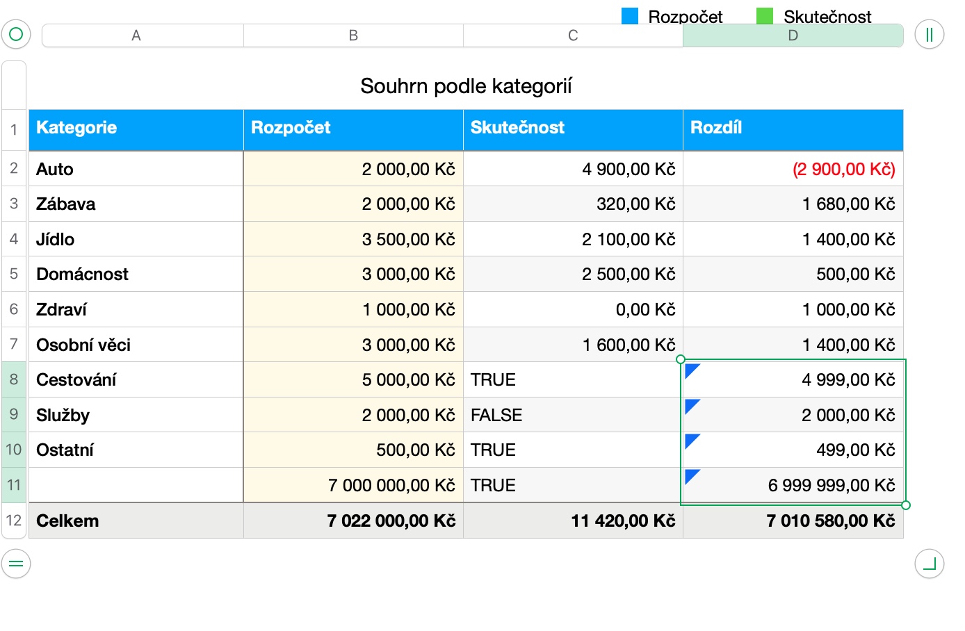 Vzorce můžete v Numbers na Macu využít také k porovnání hodnot, tedy k ověření toho, jestli jsou si hodnoty ve dvou vámi vybraných buňkách rovné, nebo zda má některá vyšší hodnotu než druhá. Podobně jako v předchozím kroku nejprve vyberte buňku, ve které chcete zobrazit výsledek porovnání, a napište do ní znaménko =. Zobrazí se vám editor vzorců. Poté klikněte na první z buněk, jejichž hodnoty chcete porovnat, a zadejte příslušný operátor pro porovnání (>, >=, =, <>, < nebo <=). V dalším kroku kliknutím vyberte druhou buňku, jejíž hodnotu chcete porovnat, a pro zobrazení výsledku buďto stiskněte klávesu Enter, nebo klikněte na zelené kolečko v editoru vzorců. V příslušné buňce se zobrazí hodnota TRUE nebo FALSE v závislosti na tom, zda je vámi zadaná hodnota pro porovnání pravdivá či nikoliv.