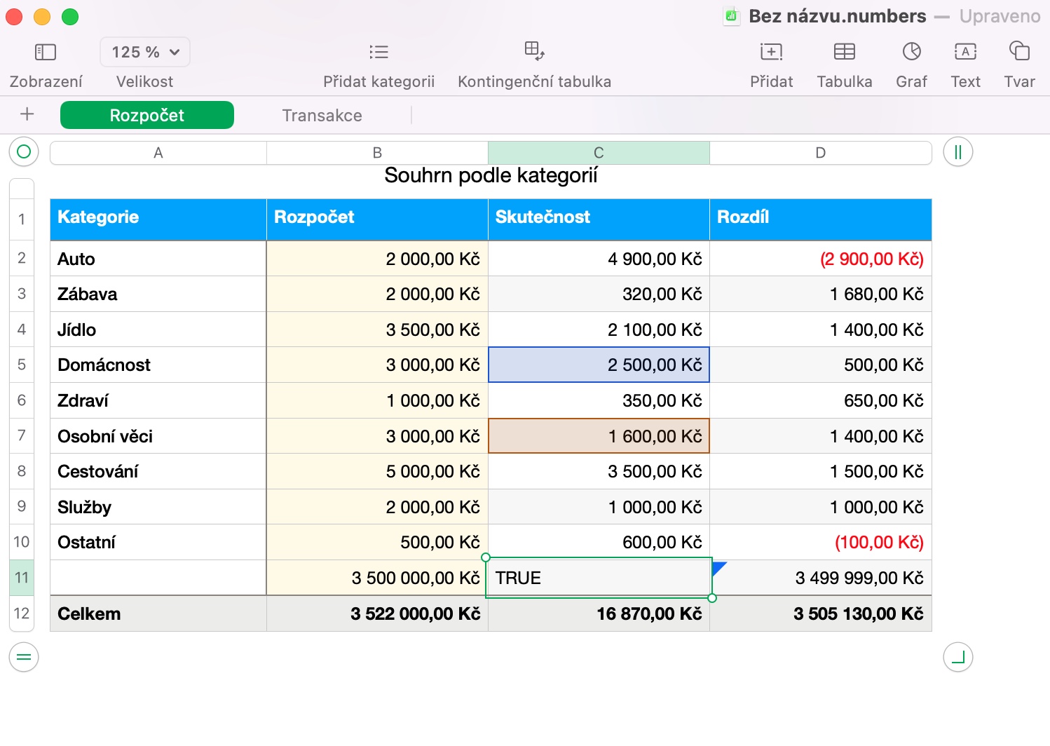 Vzorce můžete v Numbers na Macu využít také k porovnání hodnot, tedy k ověření toho, jestli jsou si hodnoty ve dvou vámi vybraných buňkách rovné, nebo zda má některá vyšší hodnotu než druhá. Podobně jako v předchozím kroku nejprve vyberte buňku, ve které chcete zobrazit výsledek porovnání, a napište do ní znaménko =. Zobrazí se vám editor vzorců. Poté klikněte na první z buněk, jejichž hodnoty chcete porovnat, a zadejte příslušný operátor pro porovnání (>, >=, =, <>, < nebo <=). V dalším kroku kliknutím vyberte druhou buňku, jejíž hodnotu chcete porovnat, a pro zobrazení výsledku buďto stiskněte klávesu Enter, nebo klikněte na zelené kolečko v editoru vzorců. V příslušné buňce se zobrazí hodnota TRUE nebo FALSE v závislosti na tom, zda je vámi zadaná hodnota pro porovnání pravdivá či nikoliv.