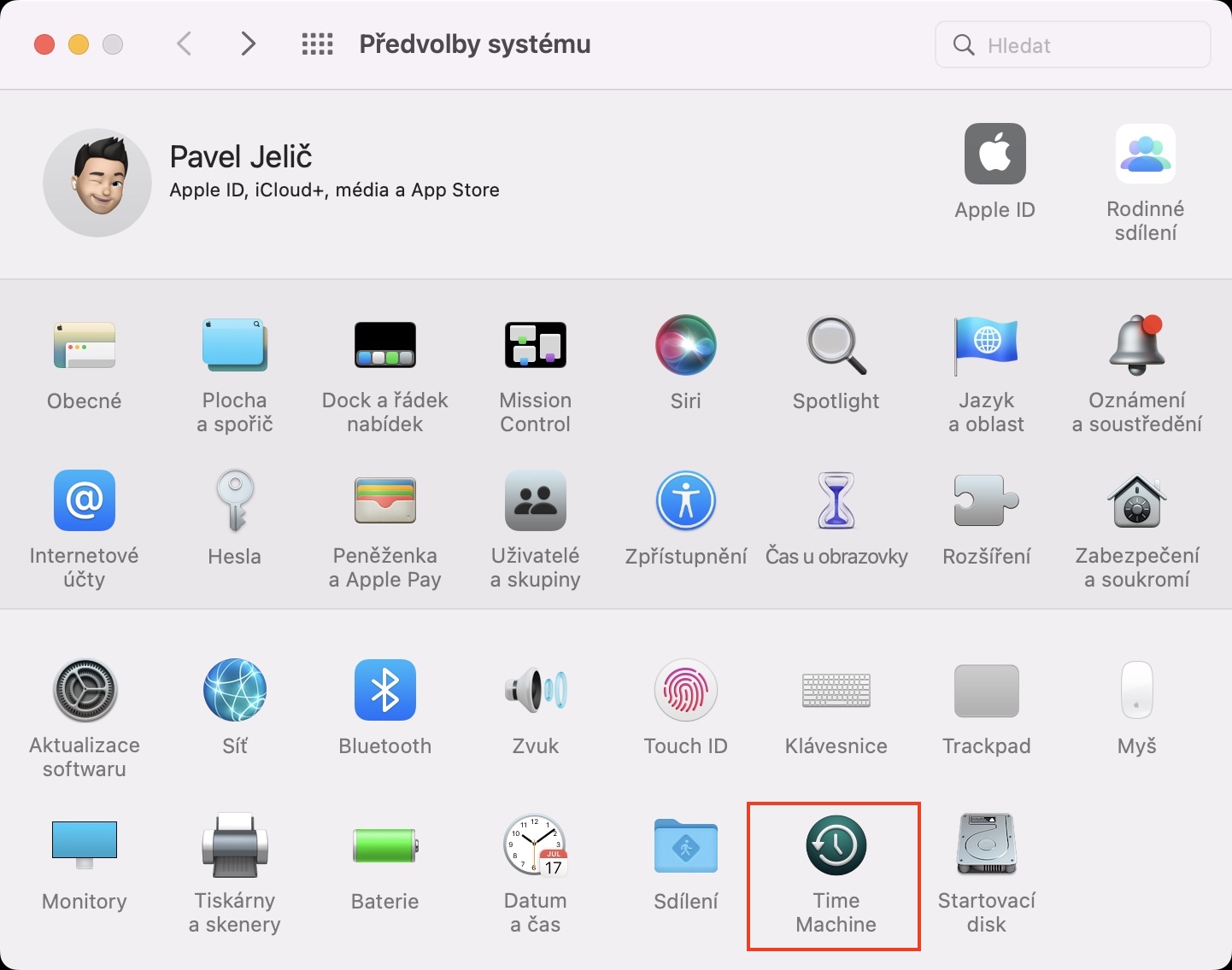 - V rámci tohoto okna najděte a rozklikněte sekci s názvem Time Machine.