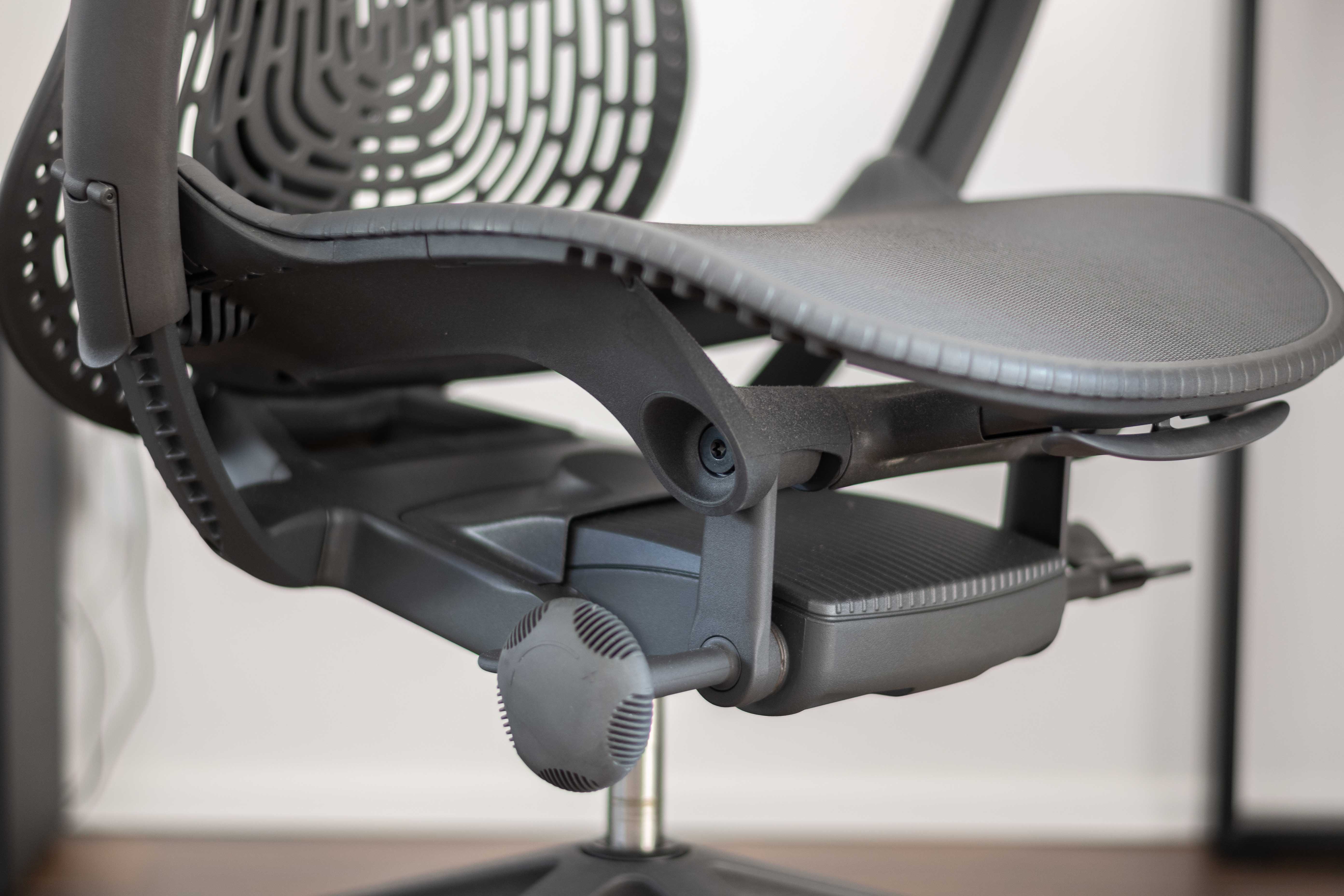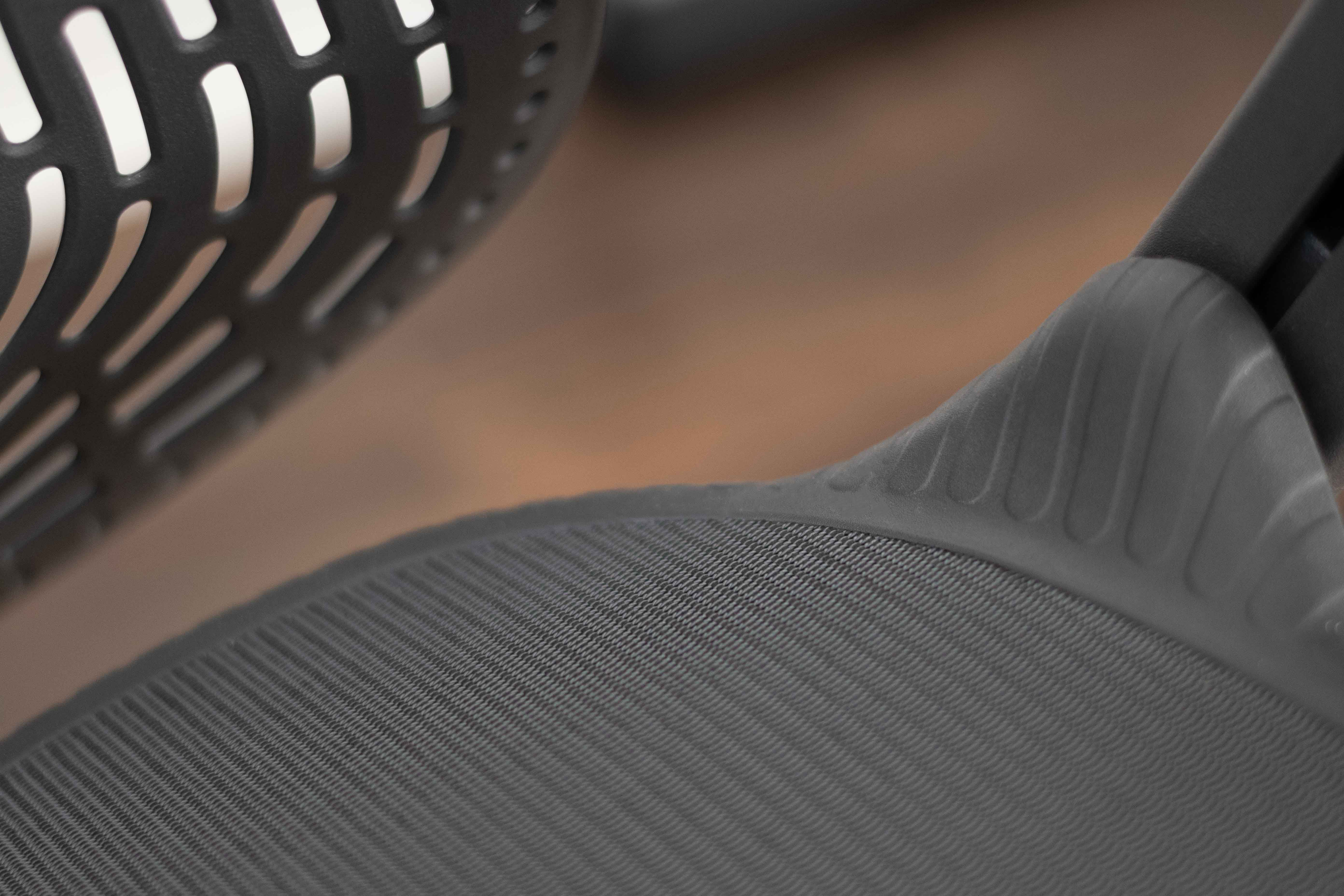 Nebudu vám lhát, s židlí se člověk nějakou dobu musí sžít a ideální nastavení budete hledat nejspíš pěkných pár dní, než tak nějak přijdete na to, co je vám nejpohodlnější a zároveň v rámci manuálu a doporučení i nejzdravější. Svou roli ve sžívání navíc hraje i podsedák, který je tvořen pružnou síťovinou a který de facto visí ve vzduchu na speciálně navržené synchronní konstrukci (tedy konstrukci, která se hýbe dle pohybů vašeho těla, díky čemuž by tak mělo být sezení na ní poměrně zdravé, respektive minimálně zdraví škodlivé). To jinými slovy znamená, že se vaše hýždě neopírají o nic tvrdého zespodu, ale formuje je jen vaše váha tlačící jej k síťovině. Podsedák navíc není rovný, ale tvarovaný do pomyslného kopečku, který je nejnižší v části, ze které vychází opěrka zad a pak vepředu, kde podsedák končí. Jakmile se tedy na židli posadíte, budete mít zprvu tendenci “zapadat” hýžděmi do mírné zadní prohlubně, což může být prvních pár dní trochu divné. Jakmile si na to ale člověk zvykne, sedí se mu extrémně pohodlně.