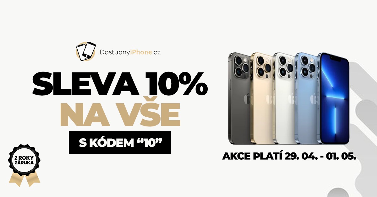 Komerční sdělení: Pokud máte v plánu přejít na novější iPhone, nebo si jen pořídit některé příslušenství, pak pro vás máme skvělou zprávu. Obchod Dostupný iPhone, který stojí za extrémně oblíbenou slevovou akcí Dostupná Středa, na tento víkend naplánoval další zajímavou slevu. Při této příležitosti totiž můžete ušetřit 10 % na nákupu jakéhokoliv produktu z nabídky. V praxi je to poměrně jednoduché. Nejprve si stačí vybrat, o co vlastně máte zájem, a v košíku už jen zadat slevový kód ve znění „10“ (bez uvozovek). Následně se cena automaticky sníží. Jedná se ale o časově omezenou akci, která platí pouze o víkendu, počínaje pátkem 29. dubna do neděle 1. května (včetně).