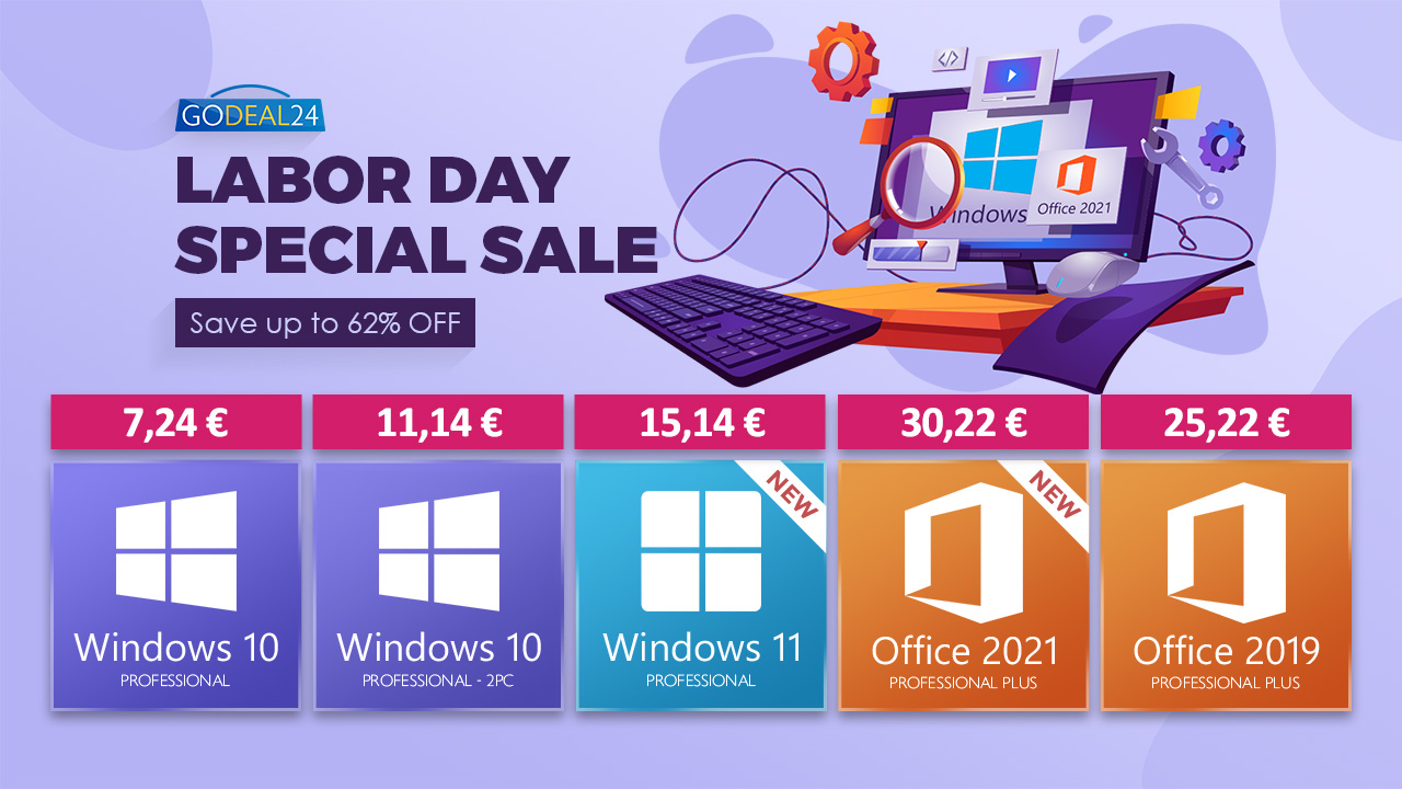 Komerční sdělení: Řešíte právě upgrade softwaru u vašeho počítače? Pokud máte spadeno na Windows nebo kancelářský balíček Office, pravděpodobně jste se pozastavili nad jejich vysokými cenami. Naštěstí je tady i další možnost – obchod Godeal24 nyní pořádá speciální akci Labor Day Sale, díky které si můžete přijít na Windows 10 za pouhých 7,24 €! Pokud navíc chcete přejít na Windows 11, žádný problém! Microsoft totiž nabízí bezplatný upgrade pro uživatele Windows 10. Nyní je tedy perfektní čas pro pořízení tohoto operačního systému. Podobně je tomu i v případě kancelářského balíčku. Jestliže pokukujete po Office 2021, ale odrazuje vás vysoká cena, zbystřete. Office 2021 nyní pořídíte již za 30,22 €! Ve srovnání s oficiální cenou u Microsoftu, který si účtuje neuvěřitelných 439,99 $, jde o obrovský rozdíl. Prakticky tak můžete ušetřit přes 9 tisíc korun.