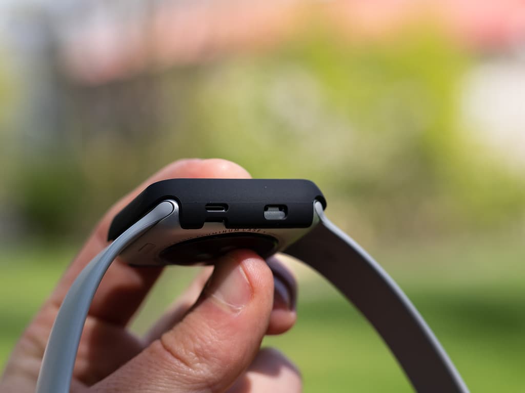 Po vyndání ochranného krytu na Apple Watch z balení jednoduše sloupnete ochrannou fólii, která je nalepena na spodní části. Následně nasadíte na hodinky. Ochranný kryt opravdu dokonale kopíruje povrch hodinek, takže se vám nestane, že by na hodinkách plandal a hrozilo riziko jeho ztracení. Po stranách ochranného krytu se nachází drobné výřezy, které zaručují dokonalou dostupnost reproduktoru, mikrofonu a dalších ovládacích prvků na hodinkách.