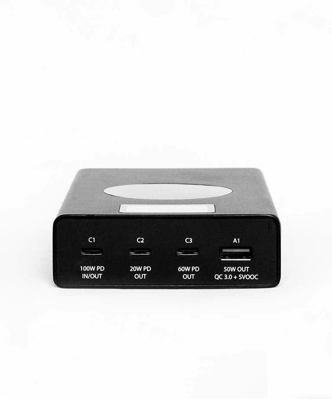 Srdcem tohoto modelu je speciální bateriový modul vyrobený z grafénových baterií (celkem 5 21700 mAh baterií Panasonic) o celkové kapacitě 25 000 mAh/ 92,5 Wh. Ten napájí celkem 5 nabíjecích rozhraní se souhrnným výstupním výkonem až 190 W. Mezi tato rozhraní patří trojice USB-C konektorů s maximálními výkony 100, 60 a 20W, podporou pro Quick Charge 3.0 a další standardy a technologie rychlého nabíjení (VOOC, SVOOC, Super Flash, Super Charge apod.) Dále na powerbance najdeme jeden USB-A port, který poskytuje nabíjecí výkon 50W opět s podporou Quick Charge. Na čelní straně powerbanky pak najdeme bezdrátovou nabíječku standardu Qi, která disponuje nabíjecím výkonem až 15W (výrobce má k dispozici také specifický model pro Apple uživatele, na kterém se nachází ještě dedikovaný 5W nabíjecí port Apple Watch).