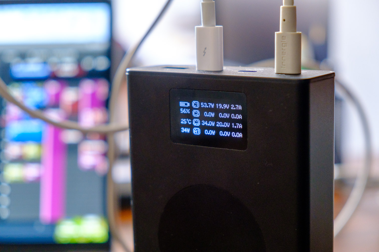 V rámci vlastního měření jsem powerbanku využíval k nabíjení 13″ MacBooku Pro (2019), iPhonu SE (2020), Apple Watch Series 4 a 12,9″ iPadu Pro (2021). Vzhledem ke kapacitě a deklarovaným hodnotám jsem byl nejvíce zvědavý na použití s MacBookem. Ten dokázala Powerbanka nabít z prázdna do plna za necelou hodinu a půl (při využití 100W konektoru), po dokončení nabíjení v ní zůstalo ještě zhruba 1-2% kapacity. MacBook byl po dobu nabíjení v provozu, dosažené časové hodnoty tak nemusí být nutně reprezentativní, neboť se může lišit způsob používání MacBooku v průběhu nabíjení. Při využití slabšího, 60W konektoru se mi plně nabít MacBook Pro nepodařilo, powerbanka se zcela vybila a MacBook byl dobitý na zhruba 75%. O nabíjení prostřednictvím nejslabšího 20W konektoru asi není třeba se rozepisovat.