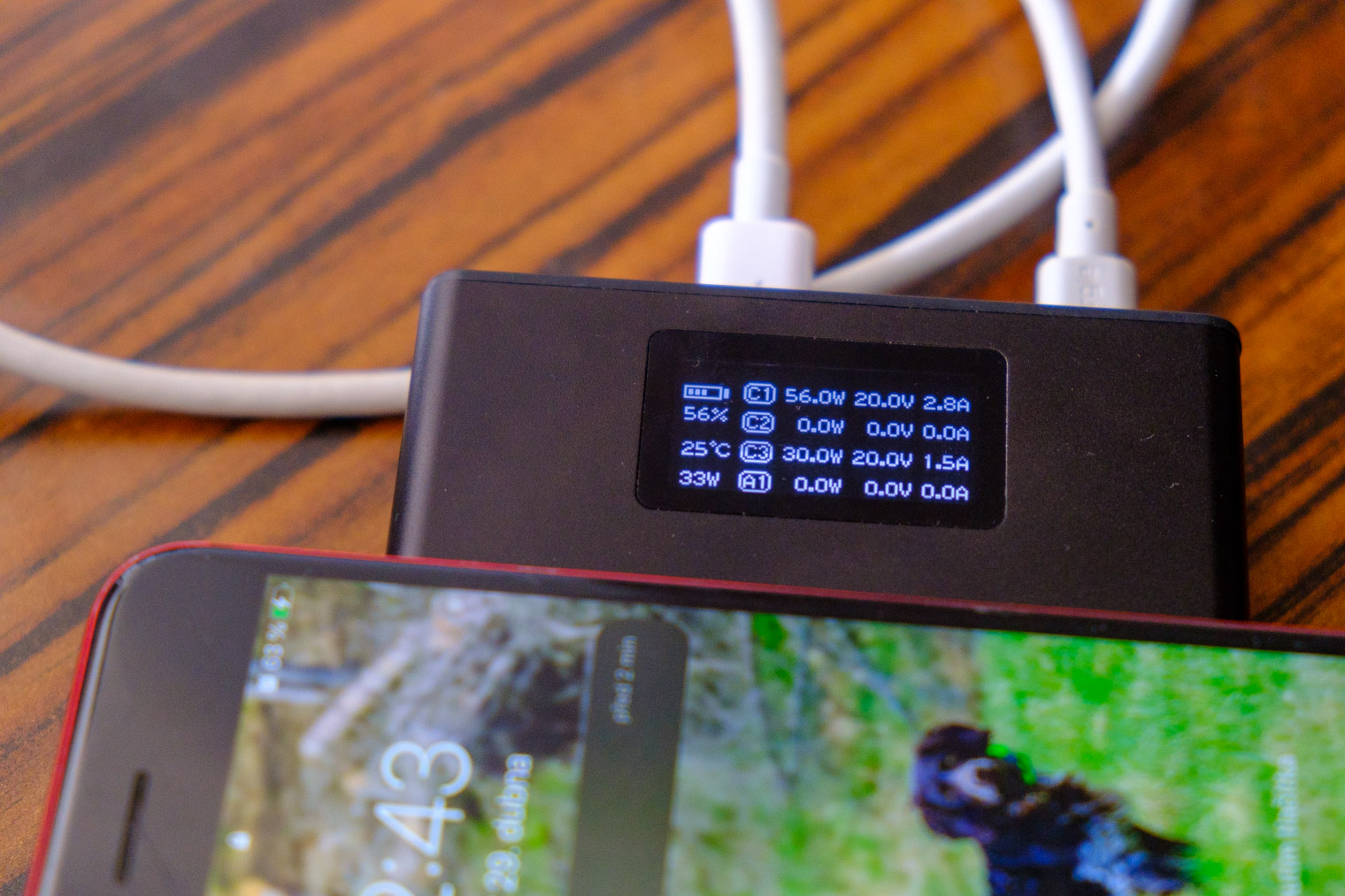 Za zmínku rozhodně stojí integrovaný OLED displej, který nabízí velice užitečné diagnostické informace o provozu powerbanky. Najdeme na něm monitor aktivity jednotlivých portů, v rámci kterého je možné číst informace o aktuálním výkonu, napětí a dodávaném proudu. Dále se zde nachází informace o celkovém stavu baterie powerbanky, teplotě bateriových článků a celkovému odchozímu výkonu napříč všemi porty. Displej je značnou devízou tohoto modelu a díky němu máte okamžitě přehled o všech výše uvedených metrikách.