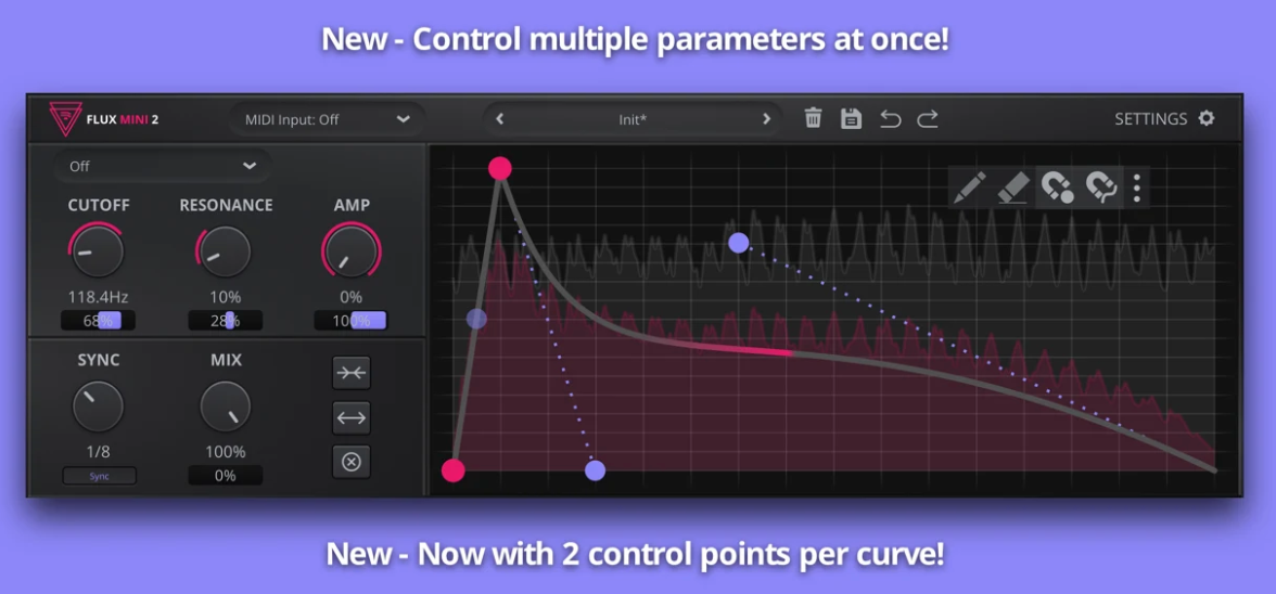 Aplikaci Flux MIni 2 jistě ocení všichni, kteří se zabývají tvorbou hudby. Flux MIni 2 je užitečný nástroj, který vám pomůže vylepšit vaše skladby. V přehledném uživatelském rozhraní můžete za pomoci tlačítek a grafů upravovat nejrůznější vlastnosti a parametry vaší skladby, a můžete využít také některý z více než dvou desítek presetů.