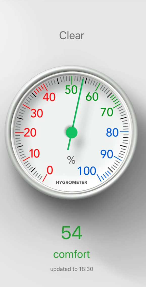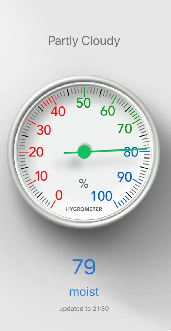 Aplikace Hygrometer – Check humidity je perfektním nástrojem, který slouží pro monitorování venkovní vlhkosti. Aplikace vás mimo vlhkosti informuje o současném stavu počasí a usnadní vám tak například výběr oblečení. Pro správné fungování je samozřejmě nutné připojení k internetu.