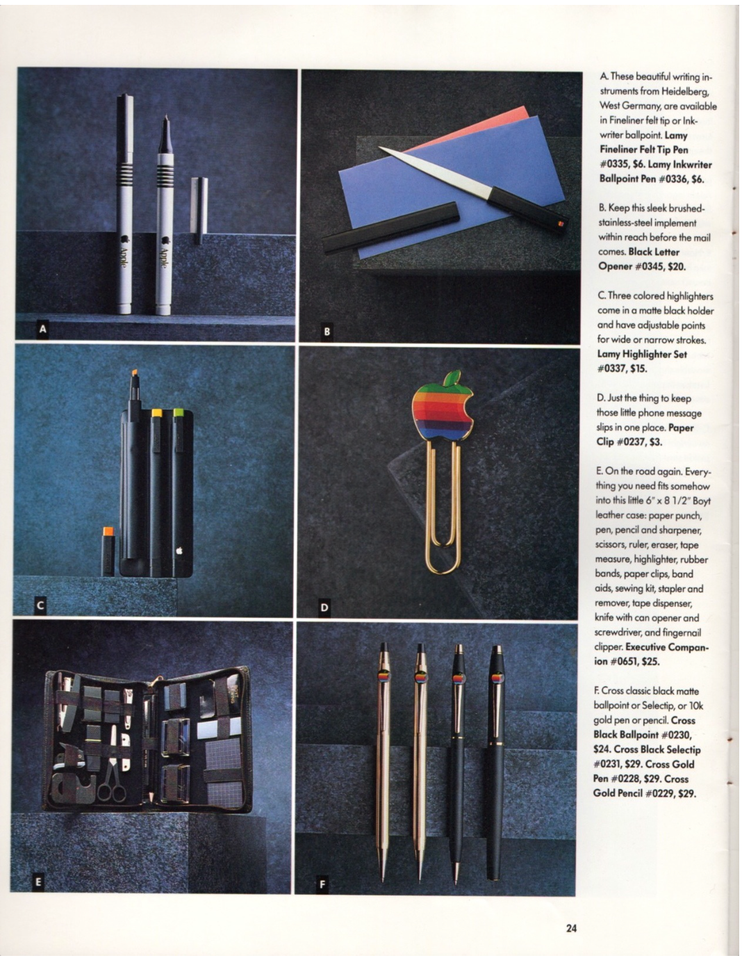 Naštěstí ale existují lidé, kteří rádi a pečlivě uchovávají i katalogy tohoto typu. A právě díky tomu si dnes i my můžeme online prohlédnout digitální podobu obsáhlého katalogu předmětů řady Apple Collection. Snímky skvěle vystihují a ilustrují dobu, kdy byla tato kolekce vydána. Nafocené předměty se vyznačují dobovým designem i barevnými kombinacemi, a katalog je naskenovaný opravdu kvalitně, takže si bez problémů můžete pohodlně přečíst také popisky k jeho jednotlivým položkám.