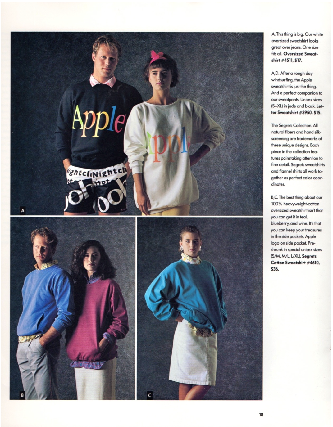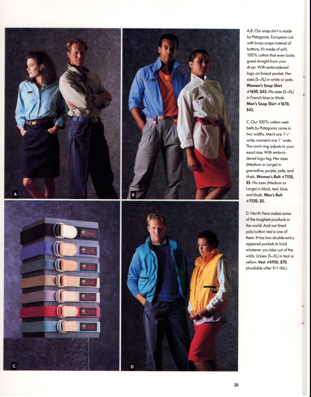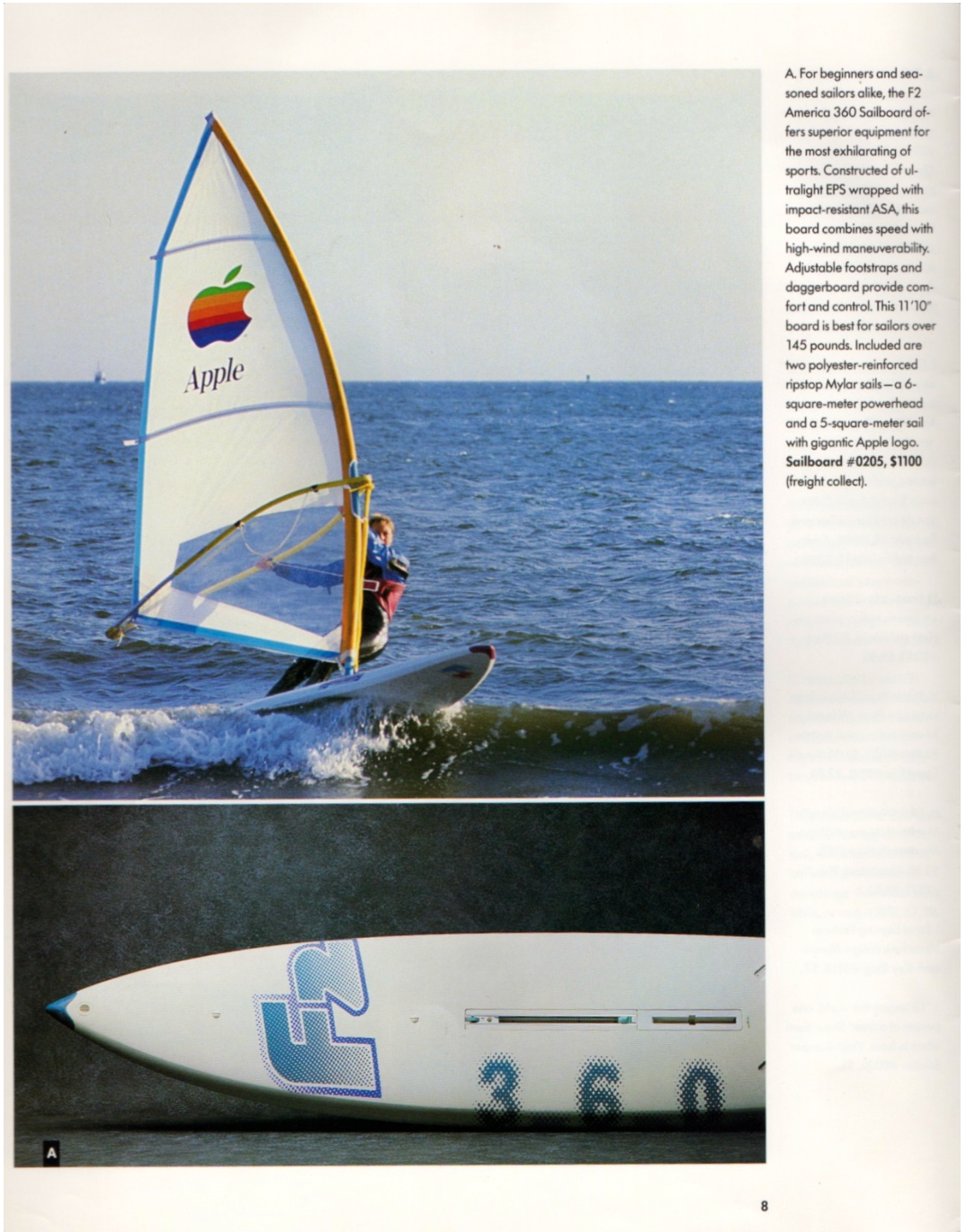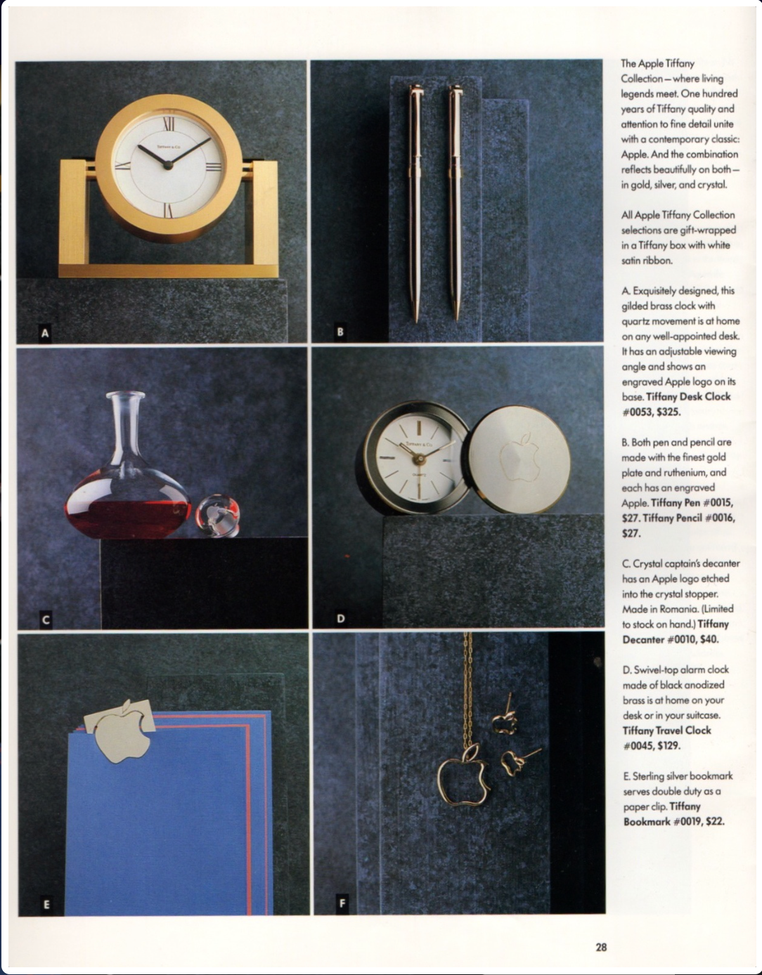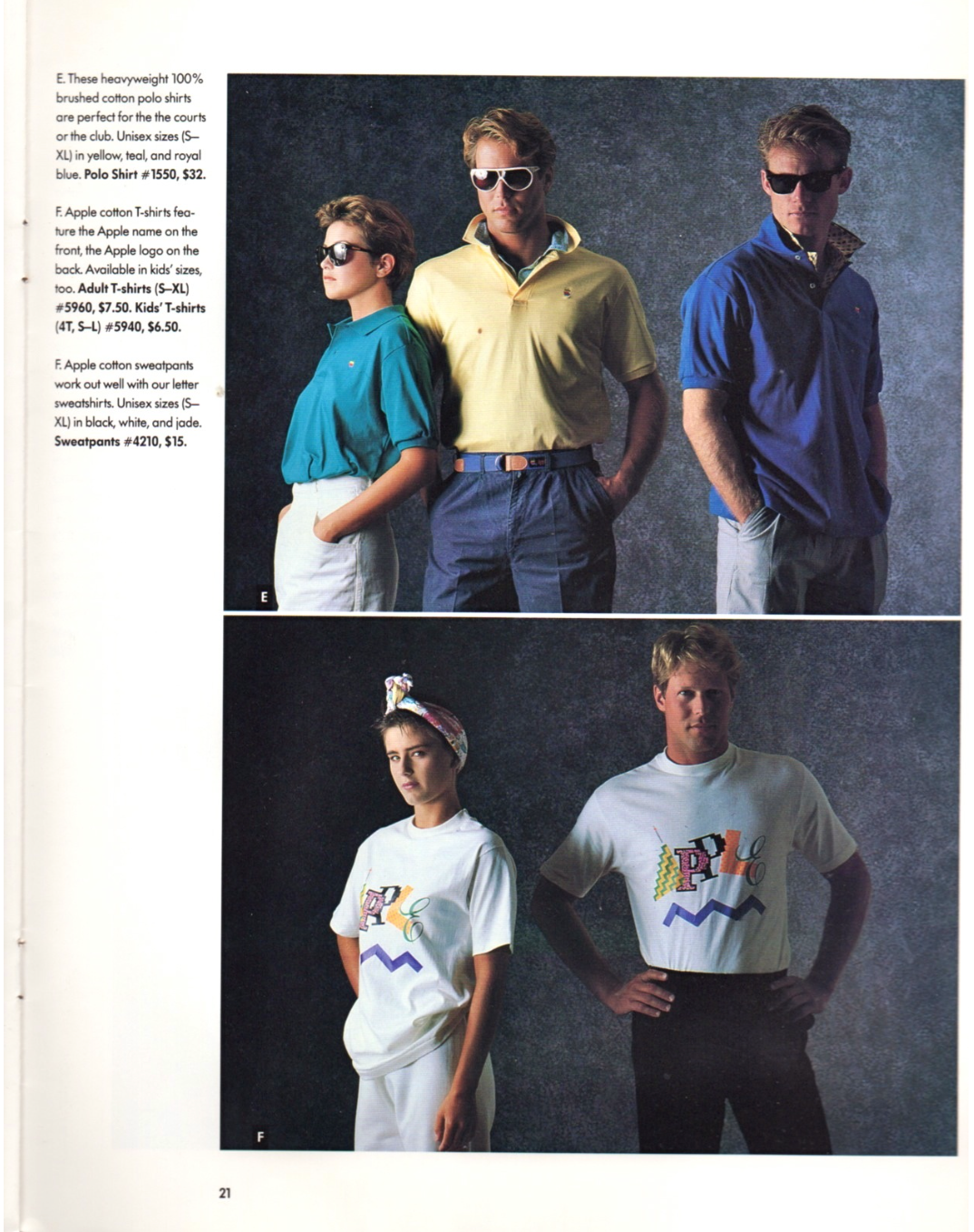 Apple se se svou kolekcí rozhodně nehodlal držet při zemi, a svým logem opatřil i méně tradiční předměty, jakou byla třeba plachta na windsurfing, skládací židlička, náramkové hodinky nebo například sada šňůrek na brýle. Součástí kolekce se ale staly také lahve, půllitry nebo třeba termosky. Veškeré předměty z Apple Collection získaly také svůj obsáhlý katalog. Papírové katalogy byly v té době u řady firem naprosto běžnou záležitostí, a lidé jimi často s oblibou listovali. V době, kdy Apple Collection vyšla, byste pochopitelně jeho online verzi nejspíš hledali marně.