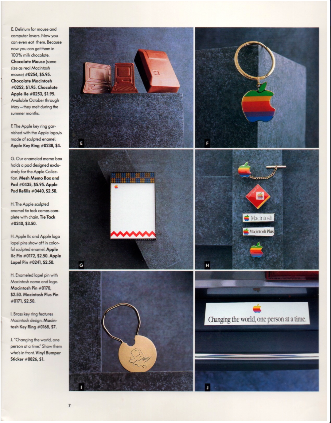 Řada znalců a fanoušků společnosti Apple jistě dobře ví, že v osmdesátých letech spatřila světlo světa také takzvaná Apple Collection. Jednalo se o upomínkové předměty s logem firmy Apple – v té době se ještě jednalo o siluetu nakousnutého jablka, vyvedenou v duhových barvách. Kromě tradičních upomínkových předmětů, jako jsou třeba trička nebo klíčenky, byly ale součástí Apple Collection například také tašky, brašny, deštníky nebo osušky, v nabídce byla i kalkulačka, kapesní nožíky či peněženky.