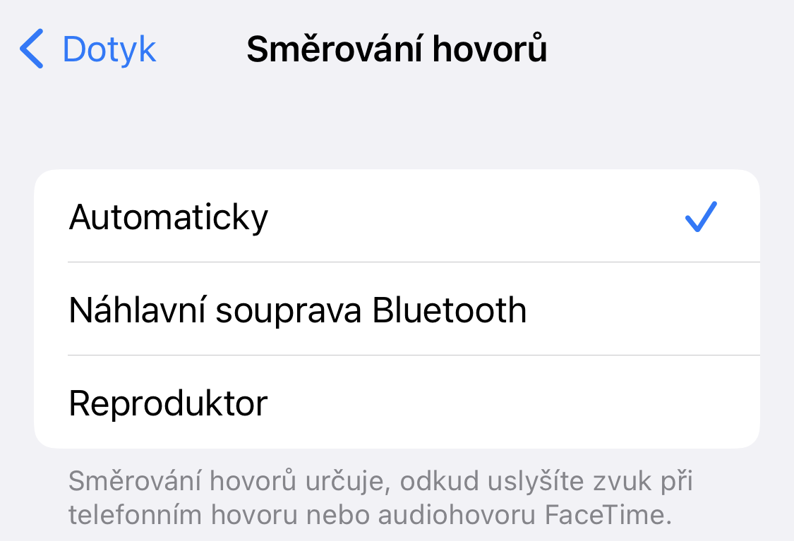 Pomocí výše uvedeného postupu je tedy na iPhone možné aktivovat automatické přijímání hovorů. To znamená, že když vám někdo zavolá, tak po předem určené době dojde bez vašeho zásahu k automatickému přijmutí. Je každopádně škoda, že automatické přijmutí hovorů nelze nastavit jen na vybraná čísla, ale pouze na všechna. Pokud byste si ještě chtěli nastavit směrování hovoru do reproduktoru nebo do náhlavní soupravy Bluetooth, tak se vraťte o stránku zpět, kde se tato možnost nachází. Kromě toho automatické přijmutí a směrování doporučuji využívat s oznamováním hovorů, kdy vám iPhone řekne, kdo vlastně volá.