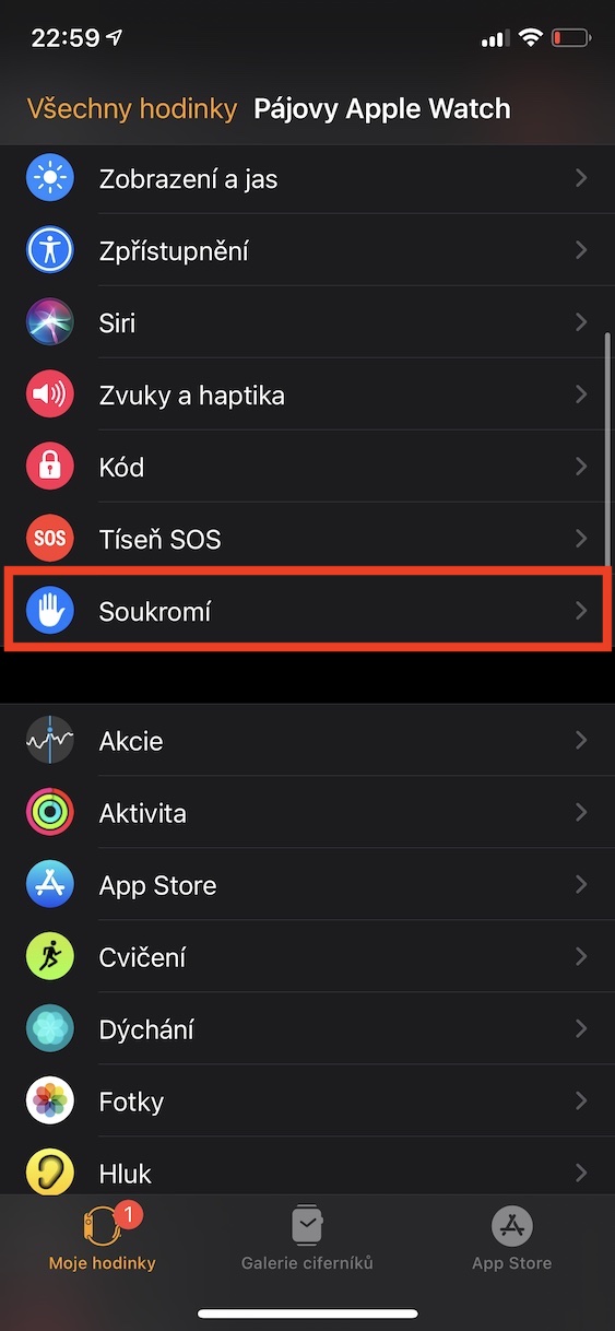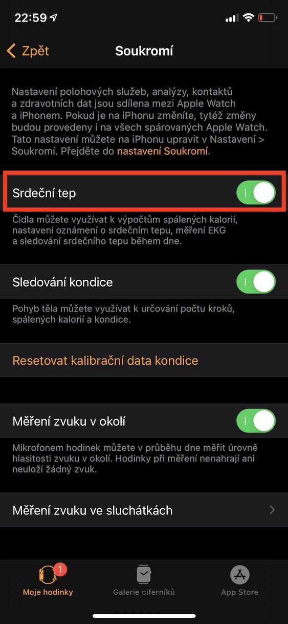 Výše jsme si řekli, jakým způsobem je možné deaktivovat sledování srdeční aktivity při cvičení, tedy při chůzi a běhu. Někteří uživatelé však dost možná nepotřebují vůbec, aby jim Apple Watch srdeční aktivitu měřily – například z toho důvodu, jelikož je využívají čistě jako prodlouženou ruku iPhonu. Dobrou zprávou je, že senzor srdeční aktivity lze na Apple Watch deaktivovat kompletně, takže dojde k výraznému prodloužení výdrže hodinek. Stačí, abyste na iPhonu přešli do aplikace Watch, kde v sekci Moje hodinky rozklikněte kolonku Soukromí. Zde už jen stačí deaktivovat funkci Srdeční tep.