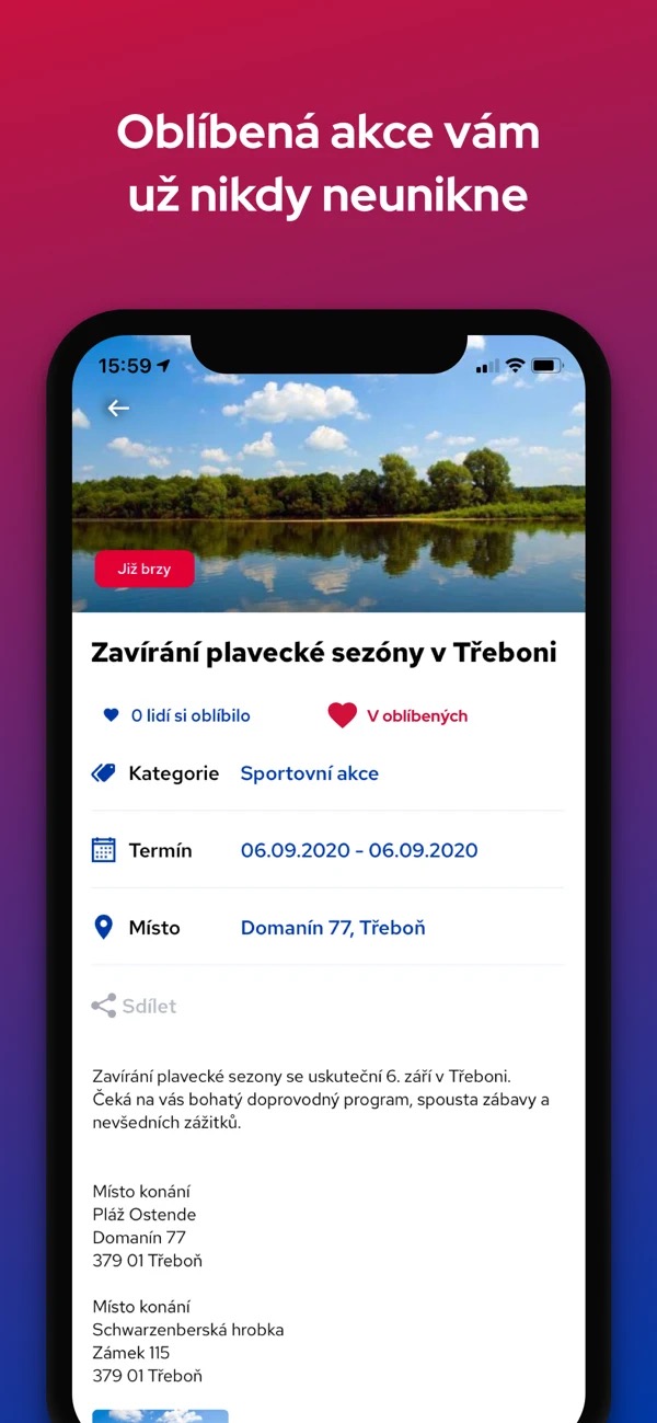 To jde ostatně ruku v ruce se zmiňovanými odlišnými zájmy. Jak můžete na přiložených snímcích vidět, prostřednictvím filtrů si můžeme určit maximální vzdálenost, časové rozpětí a typ. Snadno tak můžeme zacílit například na hudební, sportovní, gastronomické, společenské a automoto události, stejně tak i přímo na akce pro děti a řadu dalších.