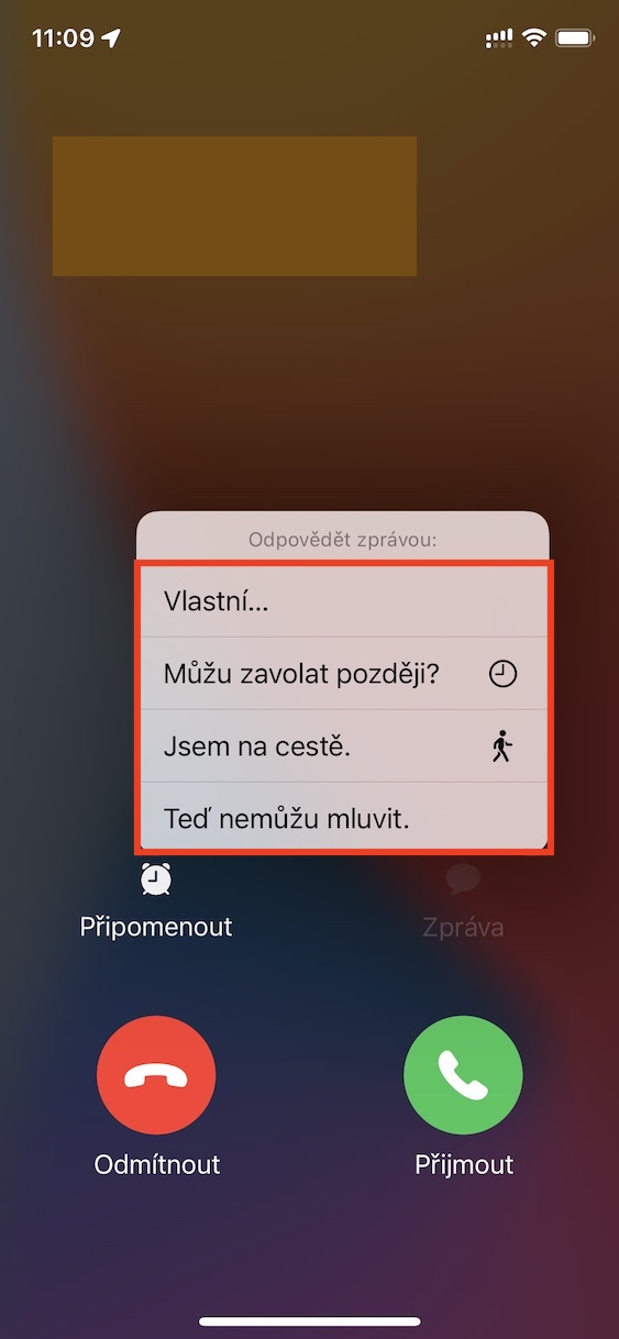 Jak na iPhone změnit rychlé odpovědi při odmítnutí hovoru