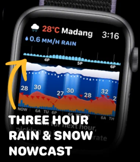 Weathergraph je multiplatformní aplikace tuzemského vývojáře Tomáše Kafky. Weathergraph ve verzi pro Apple Watch nabízí podrobnou předpověď počasí s možností upozornění na srážky či sněžení, údaje o směru a síle větru, ale samozřejmě také o teplotě a jejich změnách. Aplikace Weathergraph nabízí rovněž komplikace pro ciferníky vašich Apple Watch.
