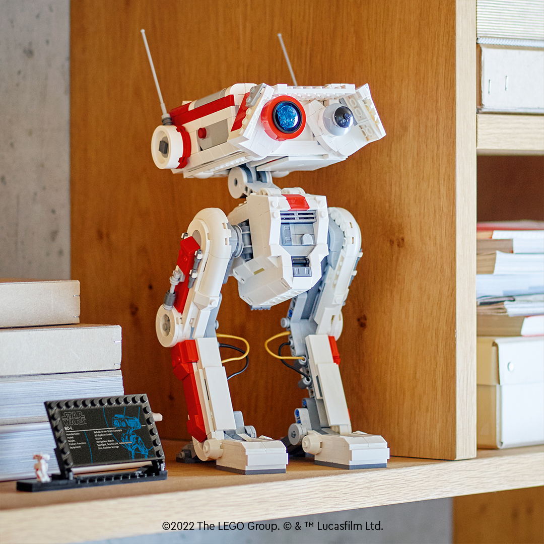 Fanoušci filmů Star Wars již brzy budou moct zařadit do své sbírky další LEGO stavebnici. Společnost ukázala postavičku BD-1. jež je známá z Jedi: Fallen Order. Její výška je 31 centimetrů a sestává z 1062 dílků. Dostupná bude od 1. srpna za cenu okolo 2600 korun.