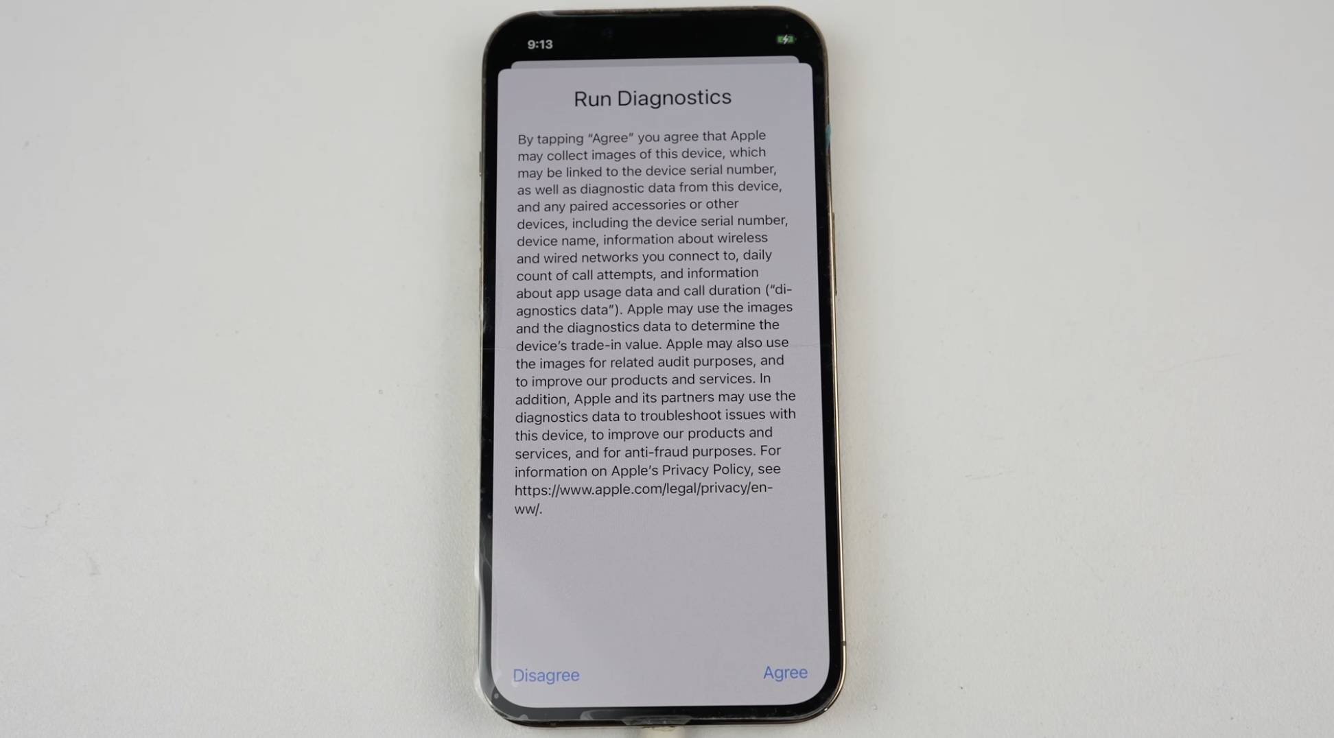 Jakmile se každopádně úspěšně přesunete do diagnostického režimu, tak se musíte připojit k Wi-Fi, aby následně mohl operátor na váš iPhone systémovou konfiguraci odeslat. Po připojení k Wi-Fi se vám však ještě objeví okno s podmínkami, které pro pokračování musíte přijmout. Většina uživatelů nejspíše tyto podmínky číst nebude, hodí se ale zmínit pár zajímavostí, které se v nich nachází. Konkrétně lze zmínit například to, že Apple může sbírat různé fotografie a diagnostická data z celého procesu, informace o připojených zařízeních, název vašeho iPhonu, počet denních hovorů, informace o využívání aplikací a další. Tato data pak Apple přiřadí k sériovému číslu vašeho iPhonu s tím, že se následně mohou využít k určení výkupní ceny (v zemích, kde je trade-in k dispozici). Apple si tak zcela jistě vede obrovskou databázi všech iPhonů, u kterých je díky těmto datům následně schopen získat informace o jejich využívání a případných provedených opravách, podle čehož cenu určí.