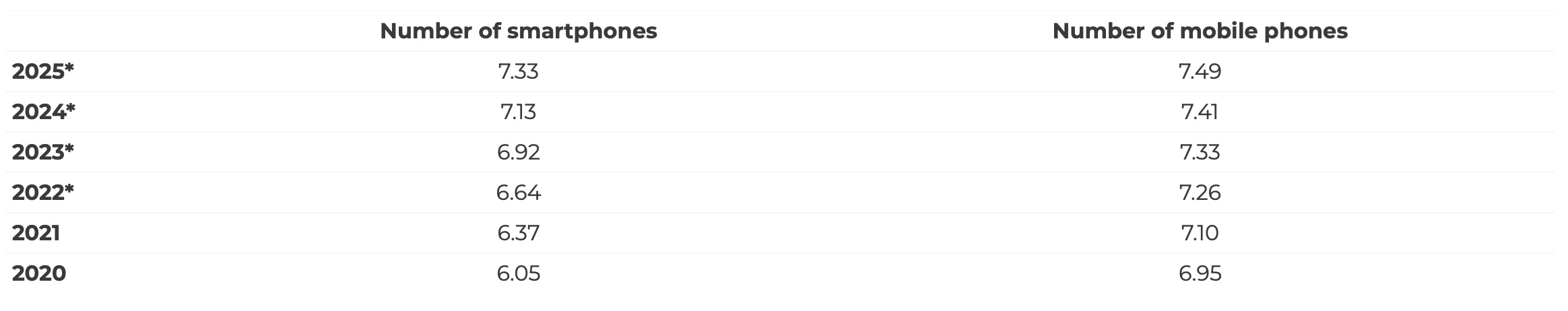 Přemýšleli jste někdy nad tím, kolik je na světě celkově uživatelů (chytrých) telefonů? V roce 2022 vlastní klasický mobilní telefon 7.26 miliardy lidí, zatímco chytrý telefon vlastní 6.64 miliard lidí. Před dvěma lety, tedy v roce 2020, vlastnilo klasický telefon 6.05 miliard lidí a chytrý telefon 6.95 miliard lidí. V roce 2025 by se pak počet uživatelů klasických telefonů měl zvýšit na 7.33 miliard a chytrých telefonů na 7.49 miliard. Díky těmto informacím můžeme určit, že aktuálně vlastní 91.54 % celkové populace klasický mobilní telefon. 83.72 % všech lidí na světě pak vlastní chytrý mobilní telefon. Zajímavé je, že ještě v roce 2016 vlastnila chytrý telefon jen zhruba polovina populace, konkrétně 49.40 %, tedy zhruba 3.668 miliard lidí.