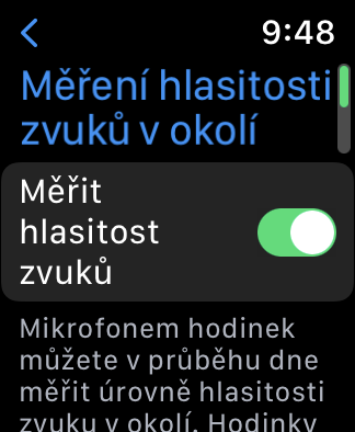 Pokud se často pohybujete ve hlučném prostředí, určitě uvítáte možnost aktivovat na Apple Watch upozornění na zvýšený hluk. Aplikaci Hluk najdete na Apple Watch s operačním systémem watchOS 6 a novějším. Spusťte na svých hodinkách Nastavení -> Hluk. Poté aktivujte položku Měření hlasitosti zvuků v okolí a nastavte požadovaný limit.