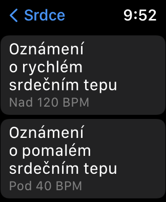 Apple Watch nabízí v rámci nativního Zdraví nejen možnost snímání srdeční činnosti, ale také upozornění na příliš vysoký nebo naopak příliš nízký tep. Tyto notifikace se rozhodně vyplatí aktivovat. Na svých Apple Watch spusťte aplikaci Nastavení -> Srdce. Zde následně aktivujte položky Oznámení o kardiovaskulární kondici, Oznámení nepravidelného rytmu, Oznámení o rychlém srdečním tepu a Oznámení o pomalém srdečním tepu.