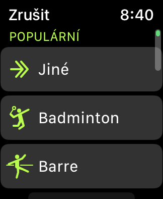 Apple Watch – respektive jejich nativní aplikace Cvičení – nabízí možnost sledování celé řady aktivit včetně těch, které neodmyslitelně patří k létu. Zatímco některé aktivity spadají jednoduše do kategorie Jiné, u dalších cvičení jsou metriky a další náležitosti přizpůsobené konkrétnímu sportu – může jít například o plavání. Pokud v hlavní nabídce Cvičení nevidíte sport, který chcete zvolit, zamiřte až zcela dolů a klepněte na Přidat cvičení. Posuňte se až za sekci s názvem Populární a vyberte požadovaný sport z abecedně seřazených aktivit.