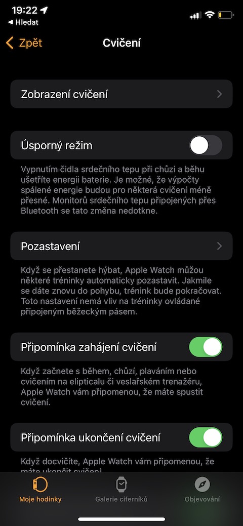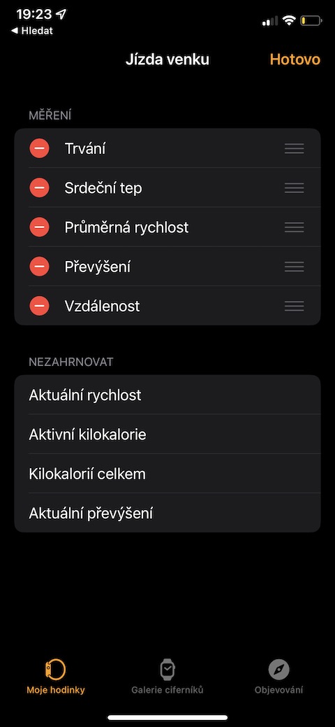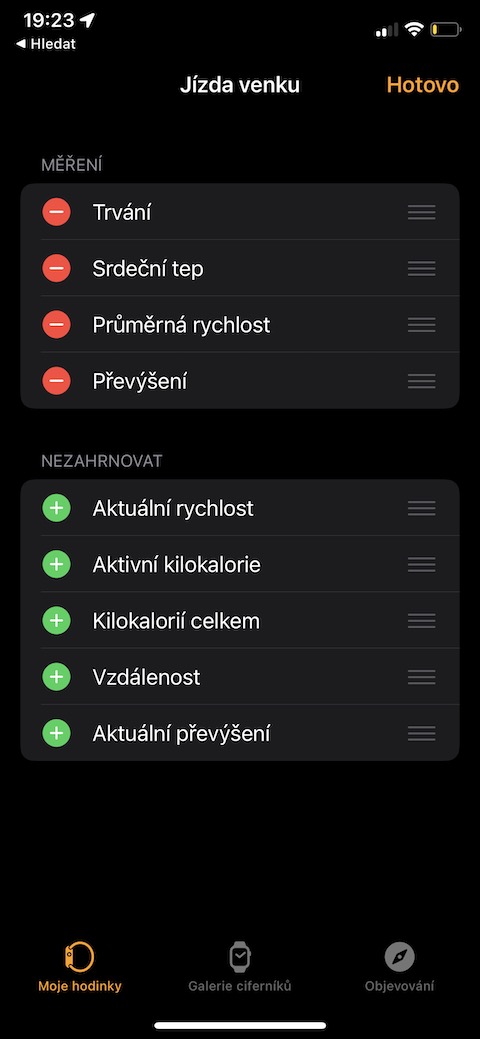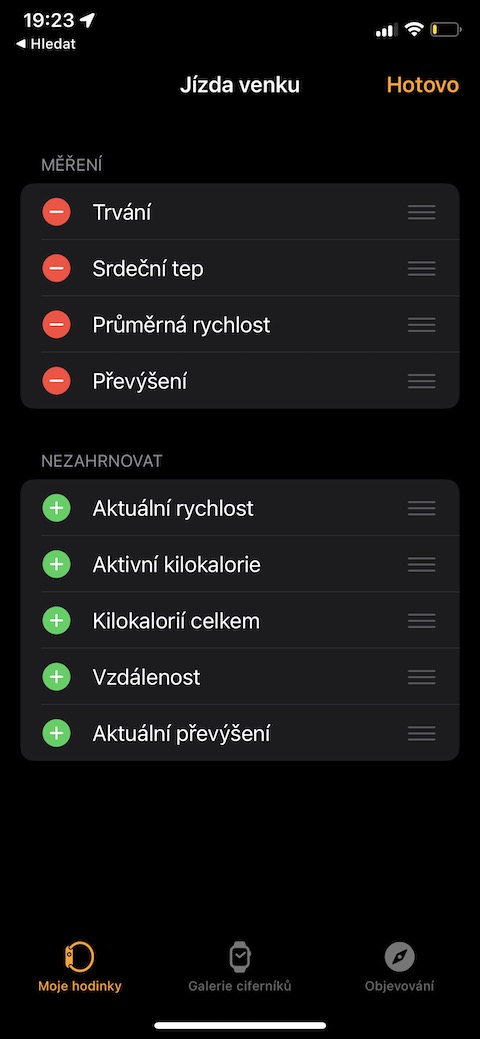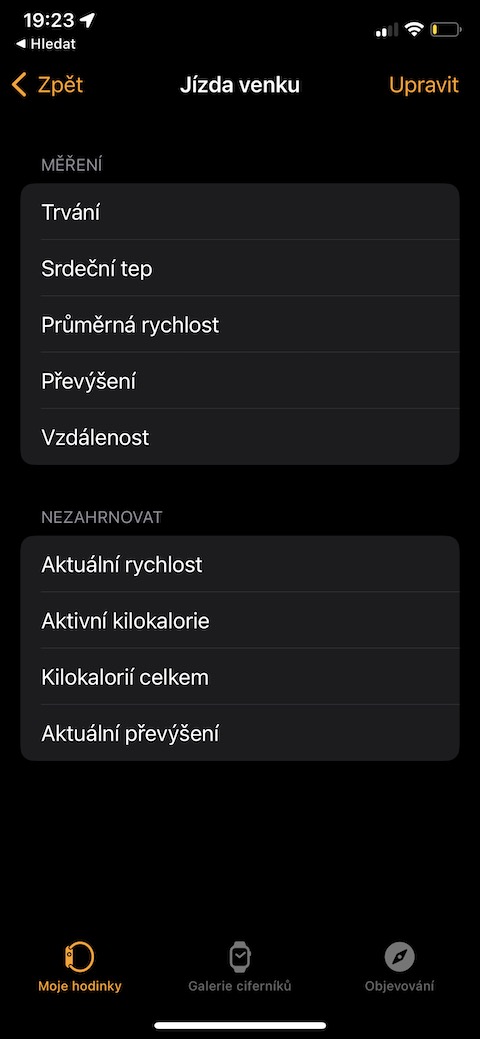 Pro každého je při sportování důležitý jiný parametr. Apple Watch nabízí uživatelům možnost přizpůsobení metrik, které se budou na displeji vašich hodinek zobrazovat v souvislosti s vaší pohybovou aktivitou. Pro přizpůsobení metrik spusťte na spárovaném iPhonu aplikaci Watch a klepněte na Cvičení. V horní části displeje zvolte Zobrazení cvičení, v seznamu zvolte aktivitu, u které chcete upravit jednotlivé metriky, a vpravo nahoře klepněte na Upravit. Proveďte požadované změny a pro dokončení klepněte vpravo nahoře na Hotovo.