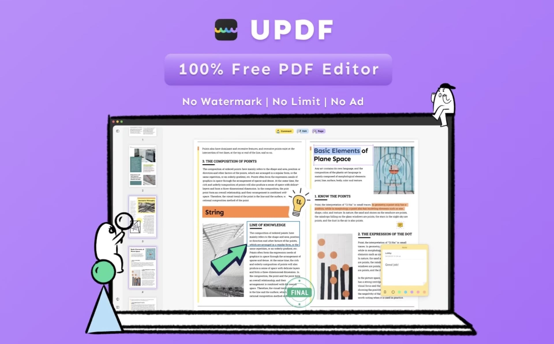 Aplikace UPDF je k dispozici pro platformy jako Windows, Mac, iOS a Android zcela zdarma. Stáhnout si ji lze rovnou z App Storu a rovnou se pustit do jejího používání. Sami musíme uznat, že nás appka příjemně překvapila svým jednoduchým uživatelským prostředím a celkovými možnostmi. Doslova lusknutím prstu si totiž poradí s kompletní úpravou textů a obrázků v PDF dokumentech, nemá problém s anotacemi (zvýraznění, podtržení, přeškrtnutí, vložení samolepek, razítek, textu a dalších) nebo úpravou v podobě rotace, extrakce, odstranění pasáží či přeskládání stránek. To je ale jen z hlediska samotných úprav. Mimo toho UPDF využívá i systém komentářů pro snazší orientaci v dokumentech, což se může náramně hodit v nejrůznějších situacích.
