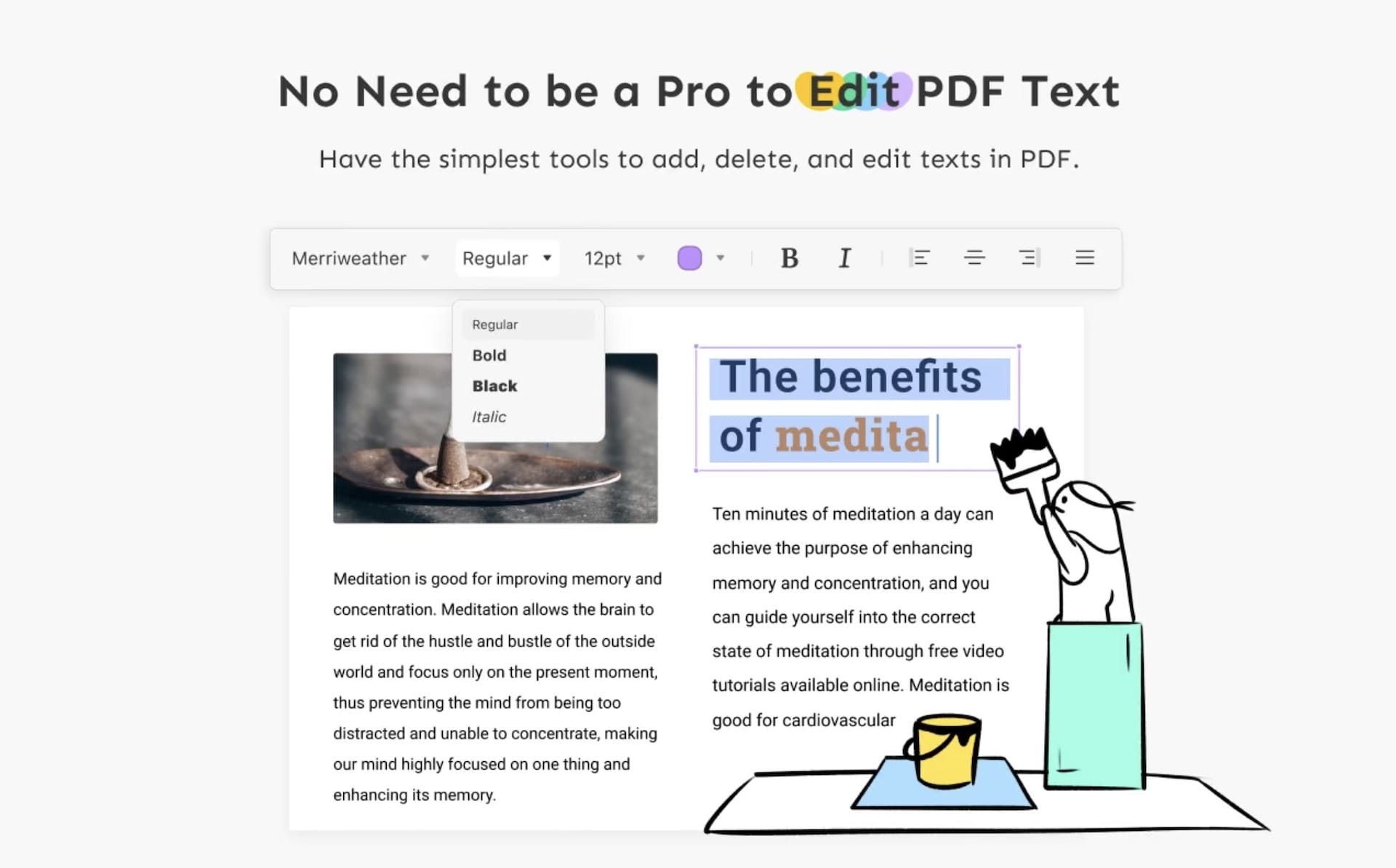 Pro jednodušší orientaci a práci jsou veškeré funkce rozděleny do třech segmentů – Comment, Edit a Page – mezi kterými se lze v okamžiku přepínat a prakticky okamžitě tak konat potřebné úpravy. Od přidávání zmiňovaných komentářů, po úpravu textu, až přes přeskládání stránek v několikastránkových dokumentech.