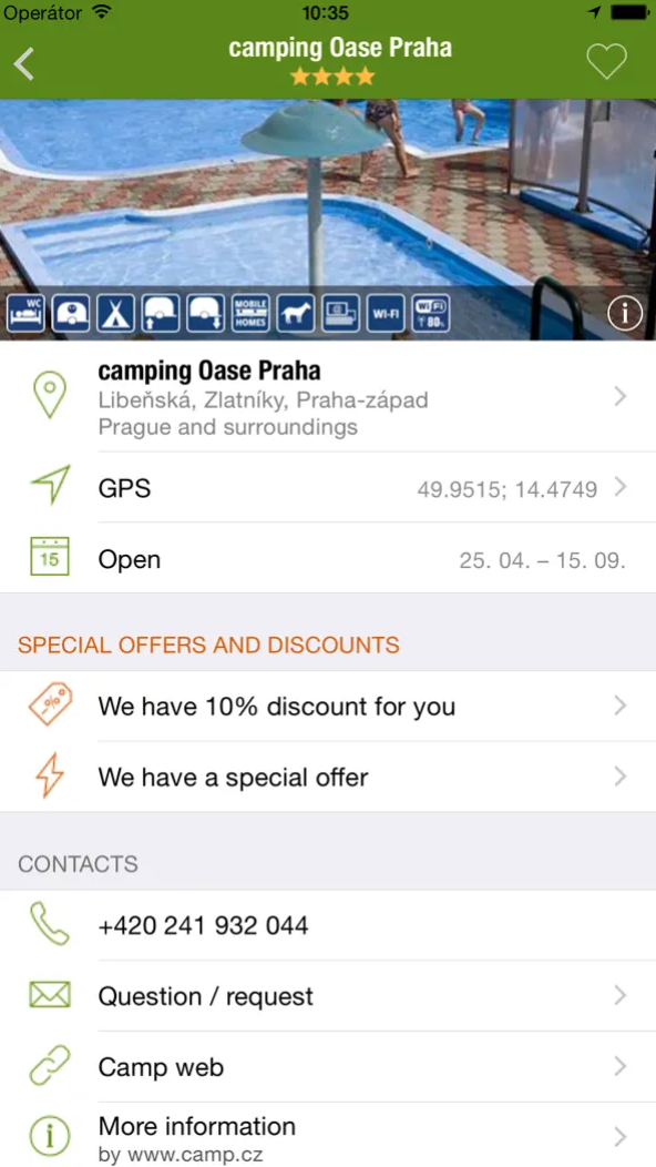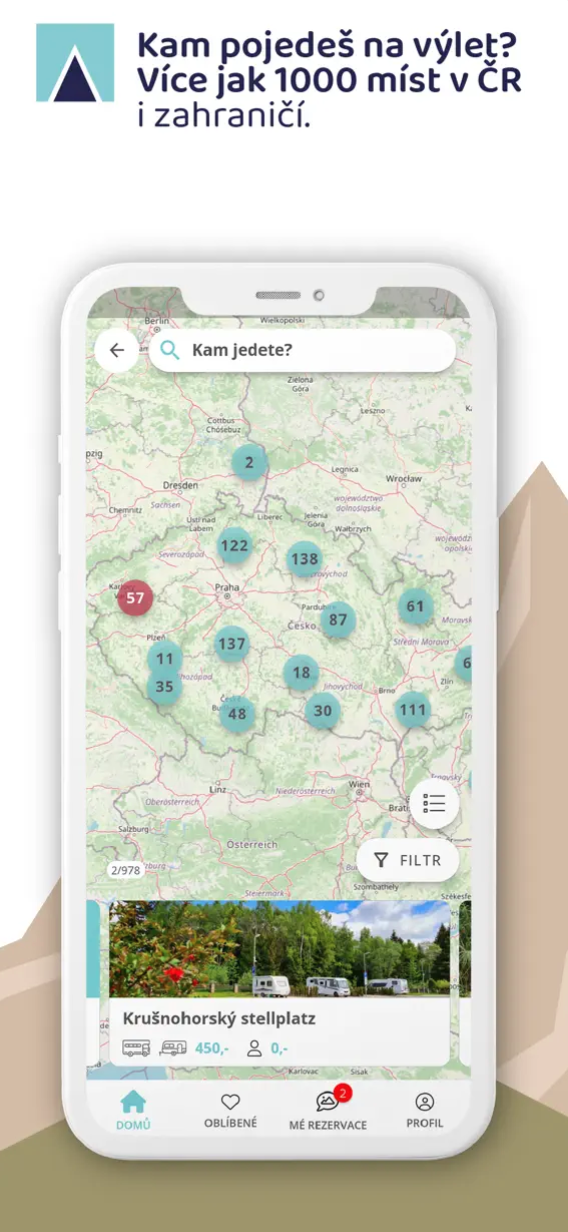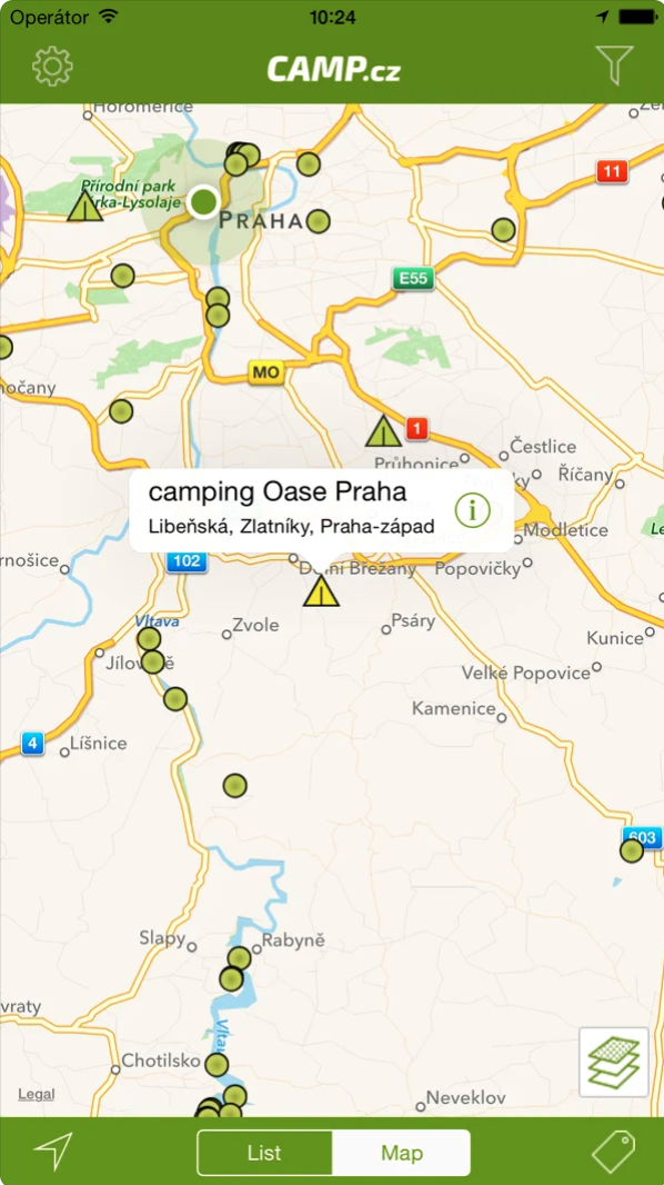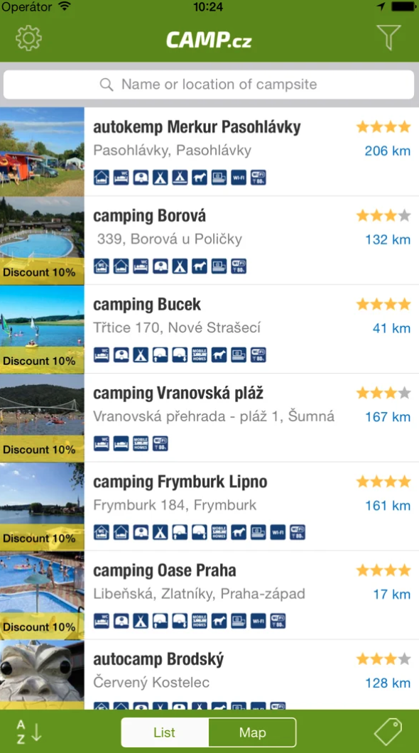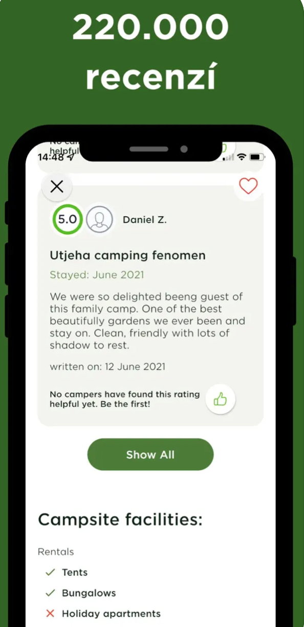 Pokud přece jenom dáváte přednost tradičním kempům, můžete se o nich informovat prostřednictvím aplikace camping.info. Najdete zde podrobné informace o desítkách tisíc kempů po celé Evropě, můžete využít pokročilé vyhledávání, mapu (i v offline režimu), přečíst si recenze nebo provést online rezervaci. Aplikaci si můžete po omezenou dobu vyzkoušet zdarma, za pokročilé funkce zaplatíte 239 korun ročně.