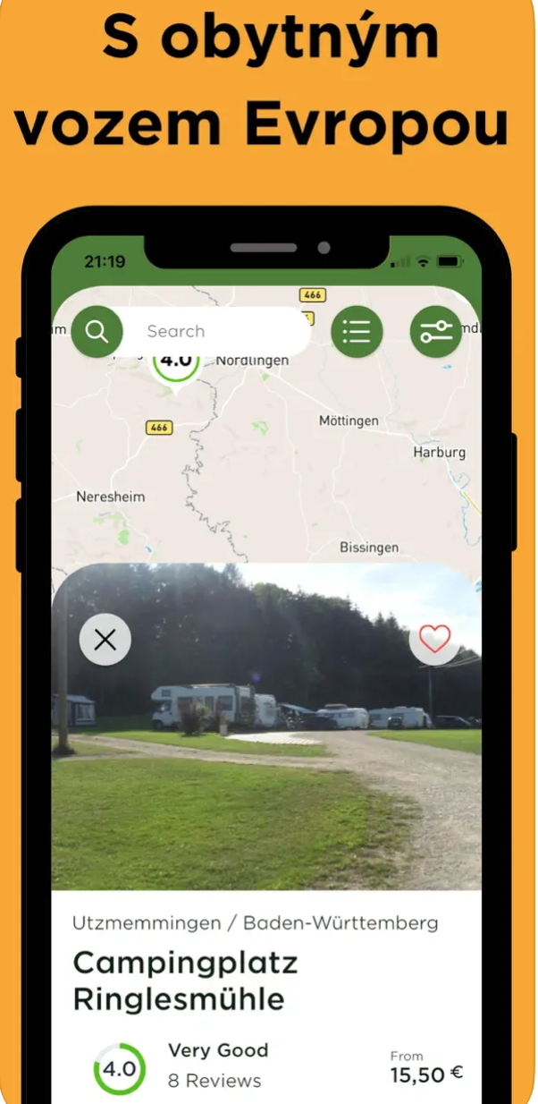 Mapy.cz jsou klasikou pro všechny příležitosti a všechna roční období. Tuto aplikaci můžete využít také při kempování. Pokud například cestujete obytným vozem, můžete do vyhledávacího pole v aplikaci zadat výraz „stellplatz„ a klepnout na Stellplatz v okolí. Aplikace vám následně vyhledá dostupná stání pro obytná auta. Vyhledávat můžete samozřejmě také v češtině.