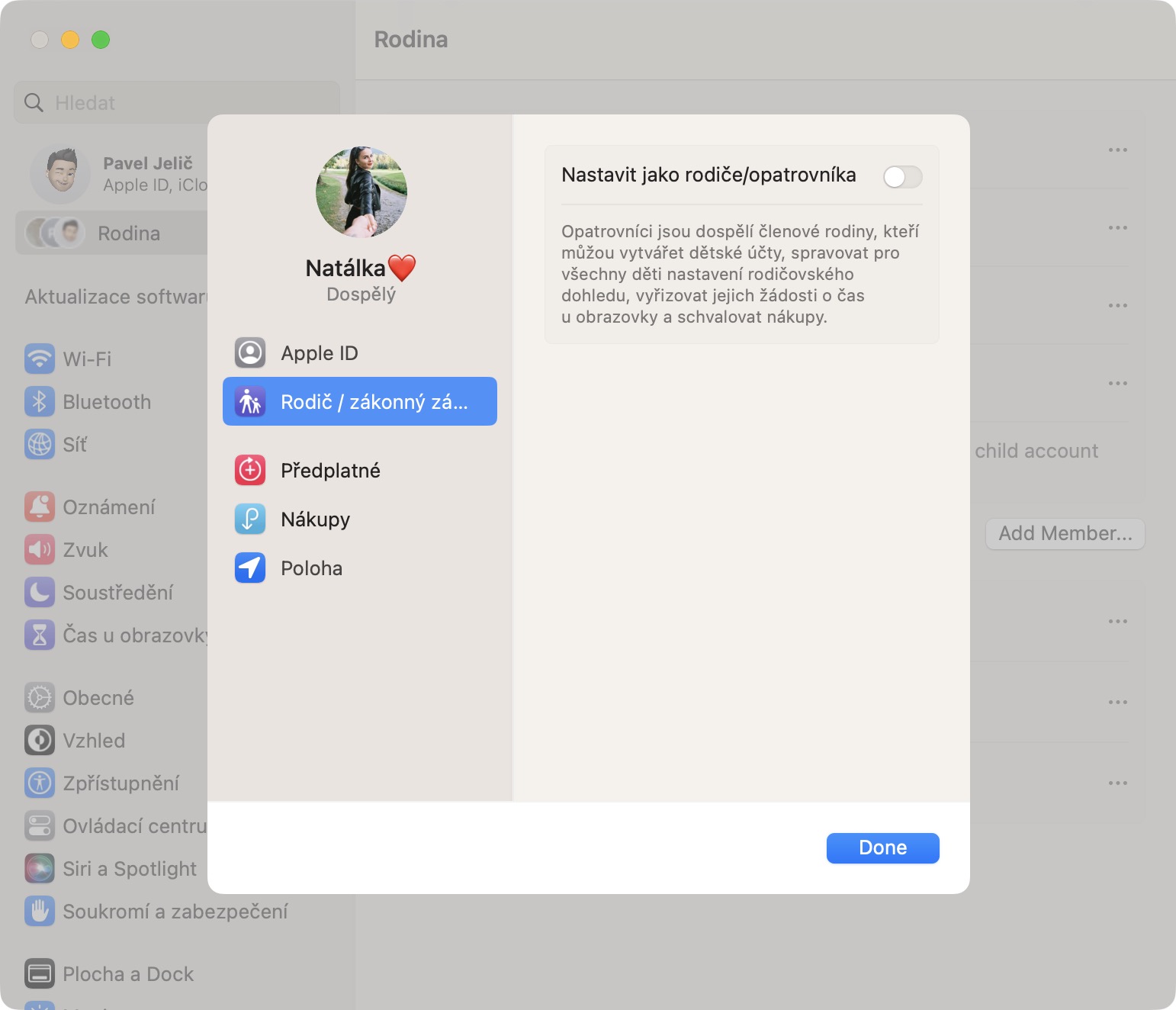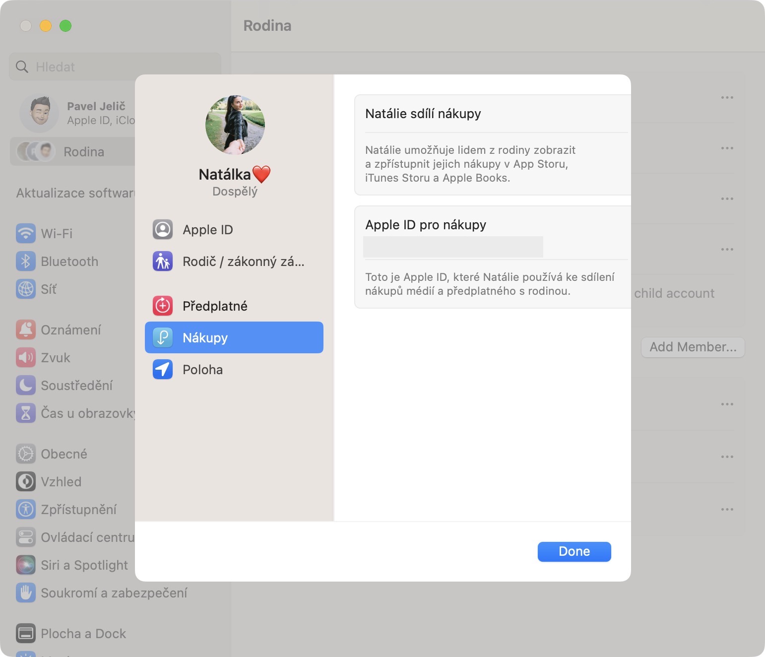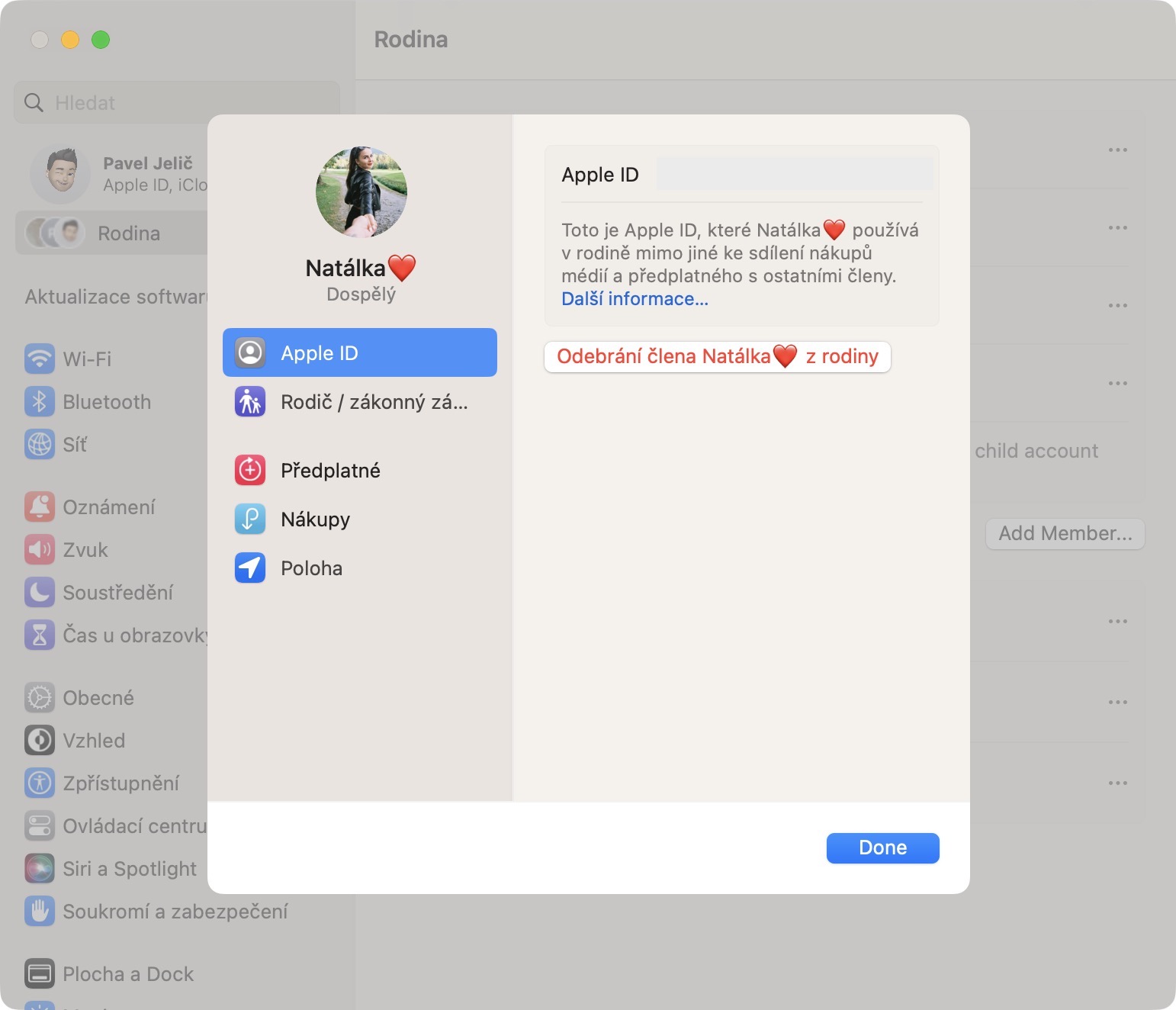V rodinném sdílení si u každého uživatele můžete přizpůsobit několik možností. Kromě toho, že si můžete zobrazit Apple ID člena, což se může v některých případech hodit, tak je možné také nastavit pravomoce rodiče či zákonného zástupce, nastavit sdílená předplatná a aplikace, společně se sdílením polohy. Pokud byste chtěli tato nastavení u člena rodiny změnit, přejděte do → Nastavení systému → Rodina, kde u dotyčného klepněte napravo na ikonu tří teček.