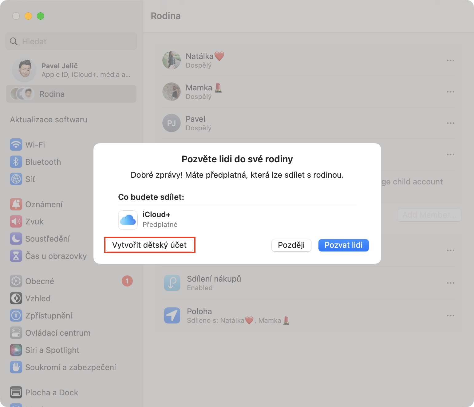 Máte dítě, které ještě nedovršilo 15 let a máte obavy z toho, jak se popere s moderním světem, který je plný nástrah? Pokud ano, tak můžete svému dítěti vytvořit dětský účet, ve kterém je možné různými způsoby nastavit omezení a další možnosti, díky kterým budete mít přehled o tom, co vaše dítě dělá. Pro vytvoření nového dětského účtu na Macu přejděte do → Nastavení systému → Rodina, kde zhruba uprostřed klepněte na tlačítko Add Member… V dalším okně pak stiskněte vlevo dole Vytvořit dětský účet a pokračujte v průvodci.