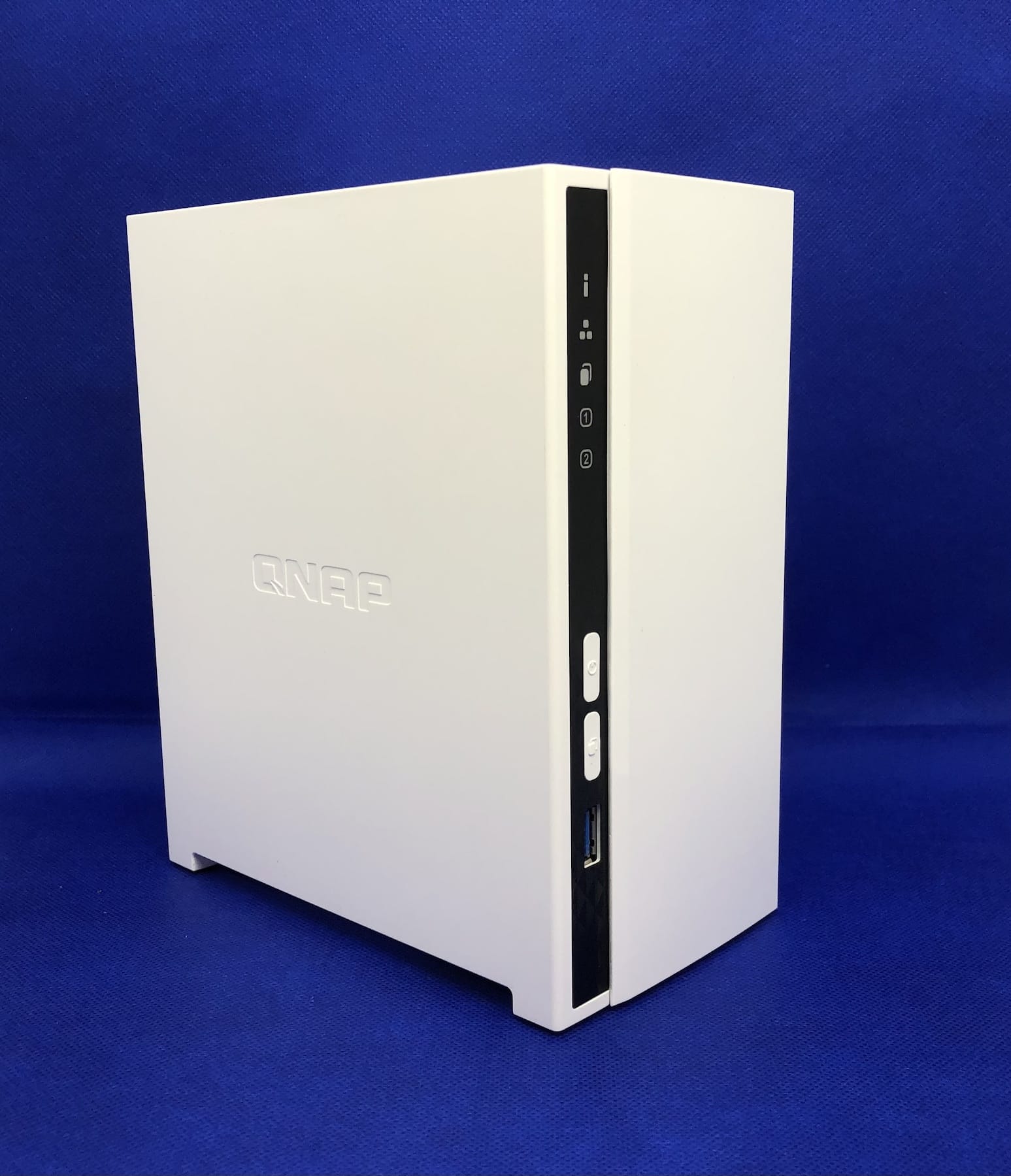 V oblasti designu se QNAP náramně předvedl. Osobně musím uznat, že mi model TS-233 padl do oka již při pohledu na samotné obrázky. O to větší překvapení přišlo při prvním rozbalení produktu. NAS vyniká svou malou velikostí a minimalistickým designem, který si zakládá na bílém provedení. Bílá barva je na přední straně také obměněna černým pruhem s informačními diodami, dvěma tlačítky a konektorem USB 3.2 Gen 1. Určitě ale nesmíme zapomenout zmínit, co samotná tlačítka vlastně dělají. Zatímco jedno pochopitelně slouží pro zapnutí a vypnutí NASu, to druhé nese označení USB One Touch Copy a úzce souvisí se zmiňovaným USB 3.2 Gen 1 konektorem. Následně si totiž můžeme nastavit, k čemu má tlačítko sloužit a jak jej budeme používat. V zásadě je to ale jednoduché – jakmile do předního konektoru připojíme externí úložiště (flash disk, externí disk apod) a zmáčkneme tlačítko, NAS automaticky zálohuje data z připojeného zařízení do vytvořeného datového úložiště v QNAP TS-233, nebo naopak. Blíže se na tuto funkci a konkrétní nastavení podíváme v druhé části této recenze.