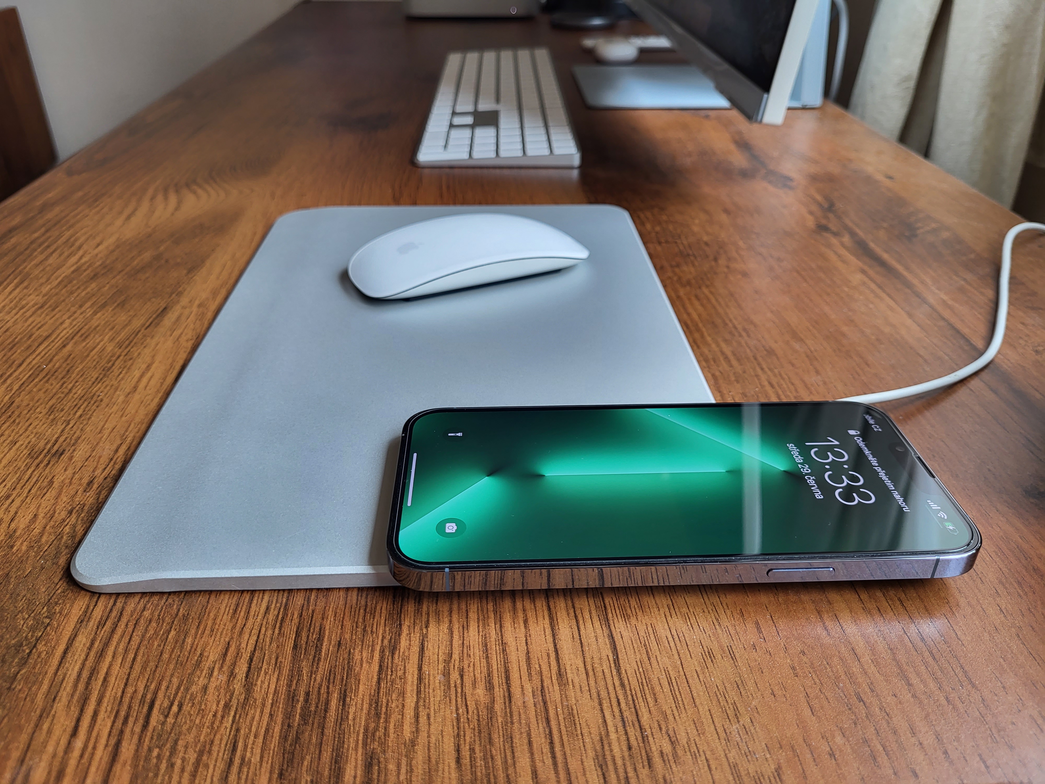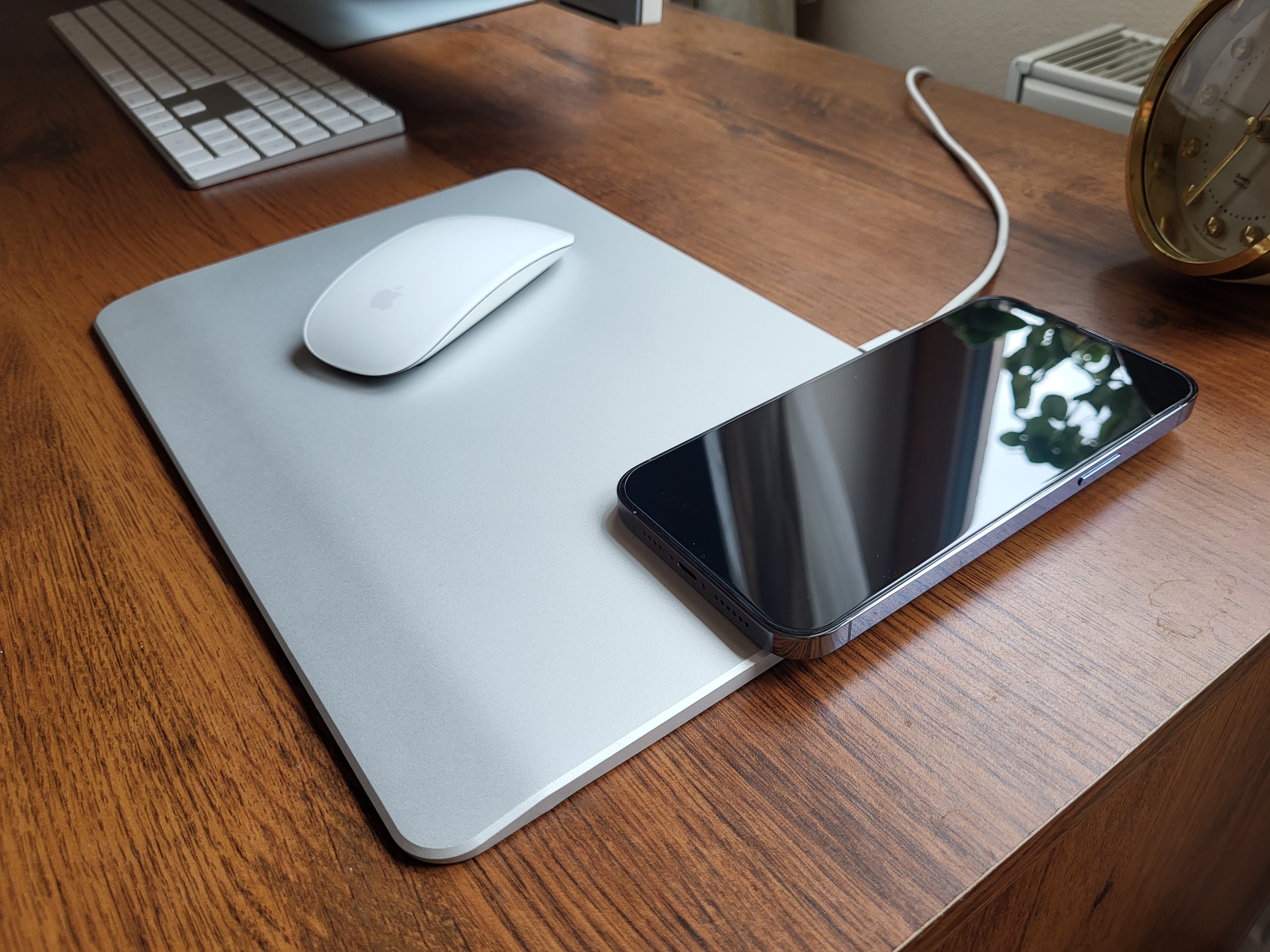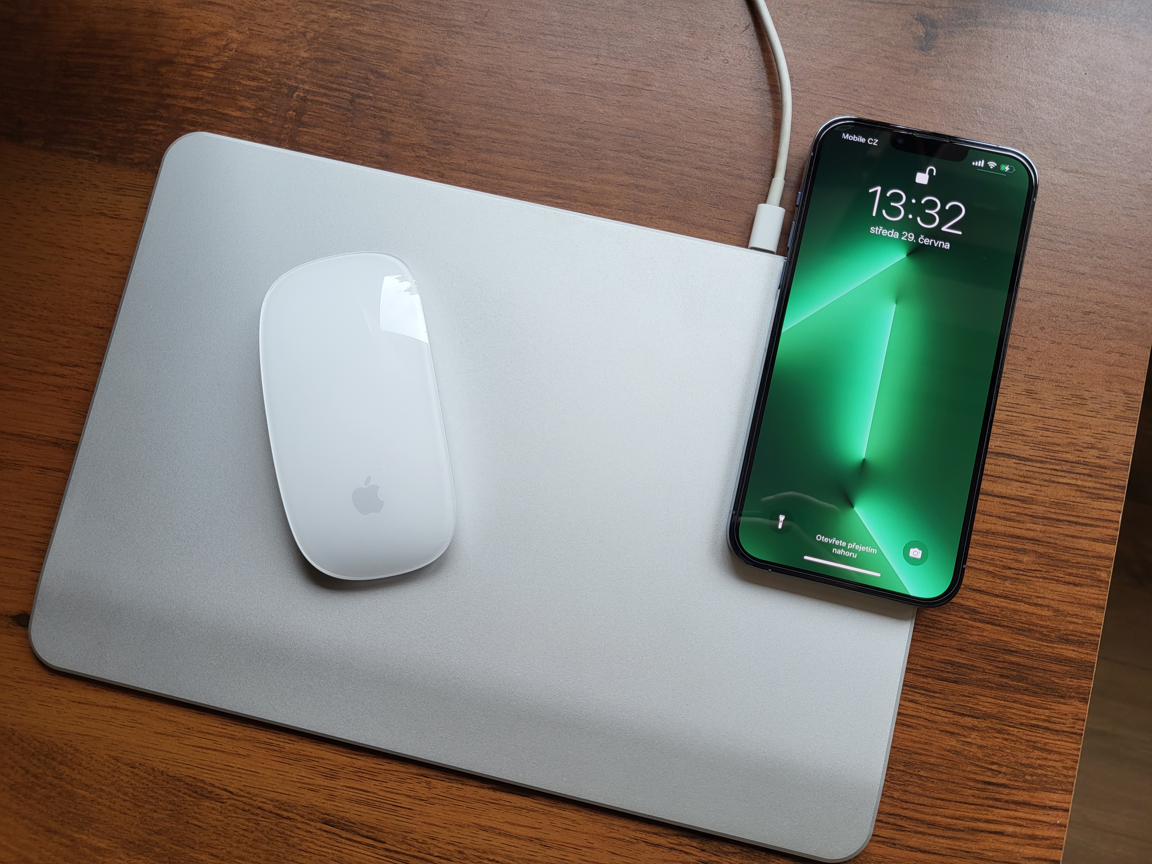 Protože je podložka skutečně rozměrná, rozhodně se vám nestane, že byste si do vedle položeného iPhonu nějak bourali. Ten máte tak pořád na očích a ostatně také po ruce, kdy stačí jen pustit myš a uchopit telefon. Pro mnohé to tak může být lepší řešení, jak různé MagSafe stojánky. Možná škoda jen metrového USB-C kabelu, který nemusí vždy dosáhnout až do zásuvky u země, my jej nicméně zapojili do monitoru, takže na takovou vzdálenost je ideální.