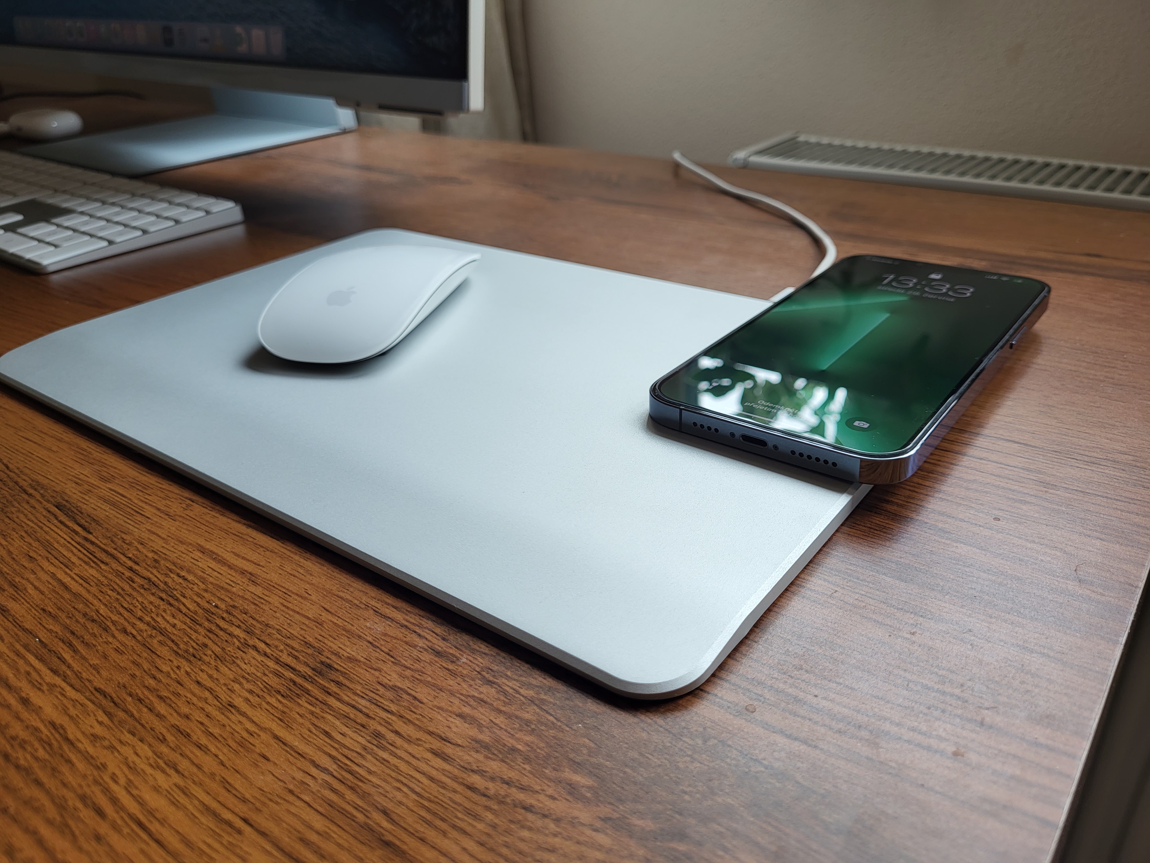 Podložka společnosti CubeNest však vypadá diametrálně odlišně, a to už jen proto, že je vyrobena z hliníku. Když ji tak dáte vedle nějakého počítače z dílny Applu, nebo i vedle Magic Keyboard, je jasné, že do celého ekosystému společnosti skvěle zapadne. K tomu má ale i přidanou hodnotu, kterou je bezdrátové nabíjení.