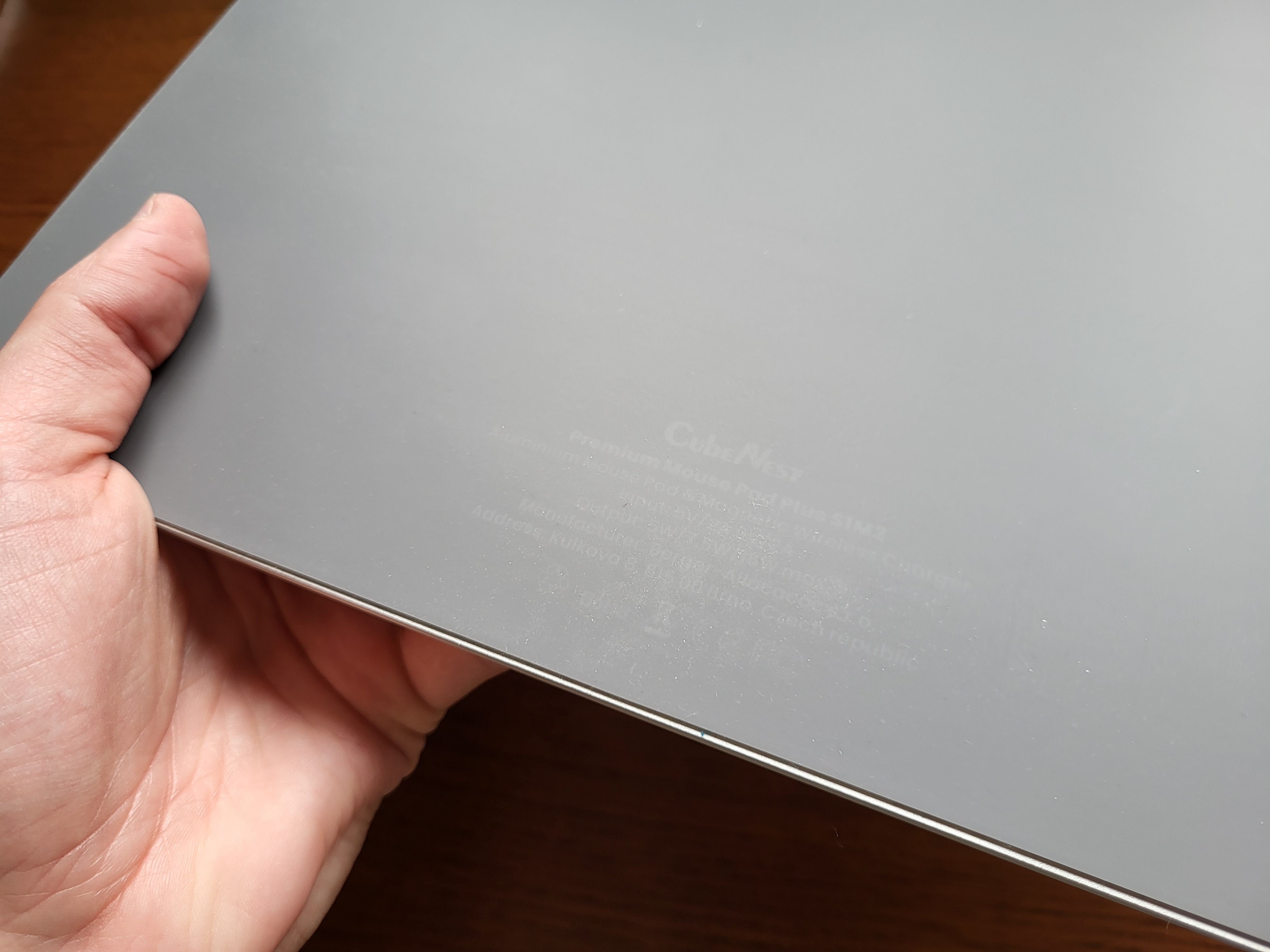CubeNest Hliníková ergonomická podložka pod myš s bezdrátovým nabíjením S1M2 má rozměry 296 x 198 mm a její tloušťka včetně integrované nabíjecí plochy je 7 mm. Není to tedy žádná placka, za což vám poděkuje i vaše ruka. Zejména Magic Mouse Applu zrovna nějakou ergonomii neoplývá. Tím, že ale bude na podložce myš výš, může se vám o poznání lépe používat. To i díky zkosení přední hrany podložky, o kterou si můžete svou ruku příjemně opřít.